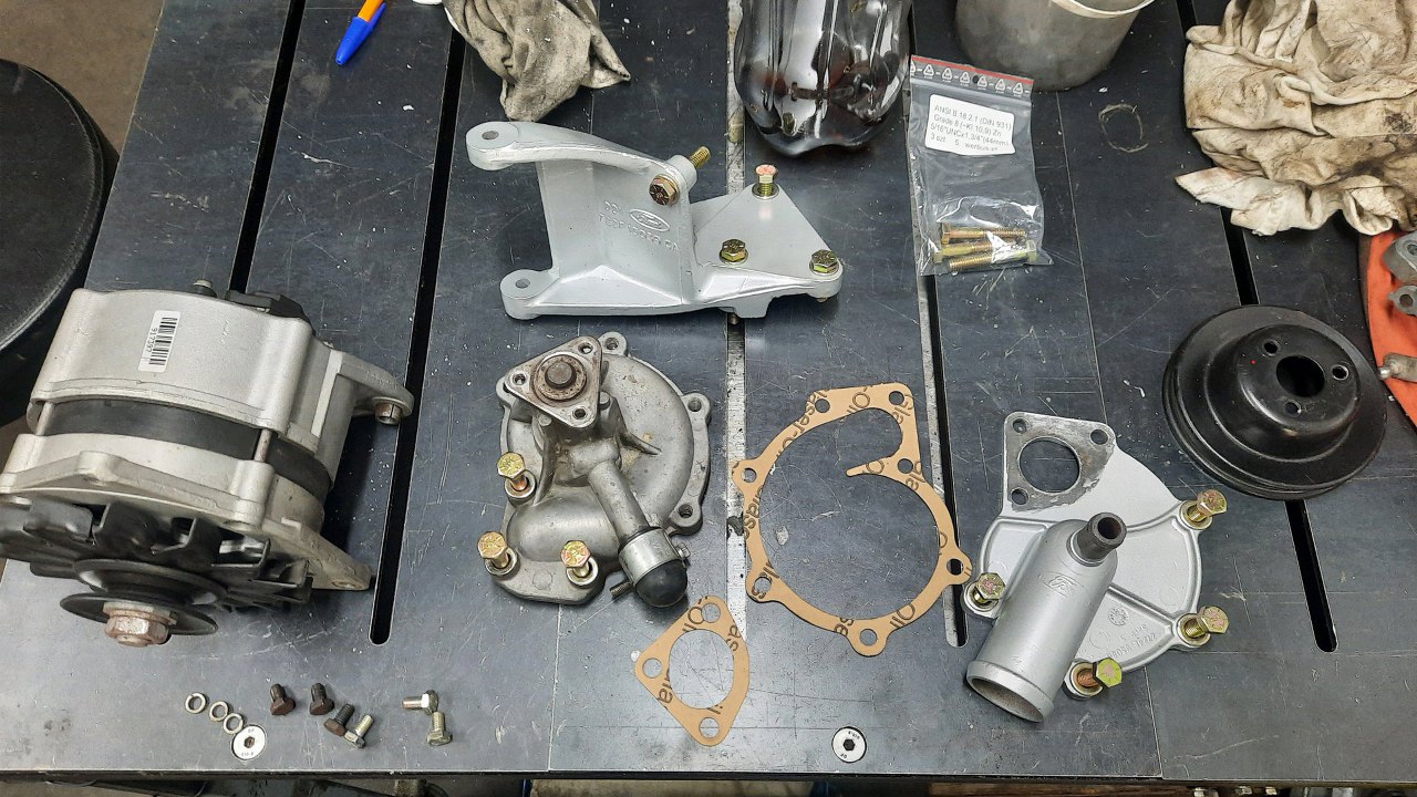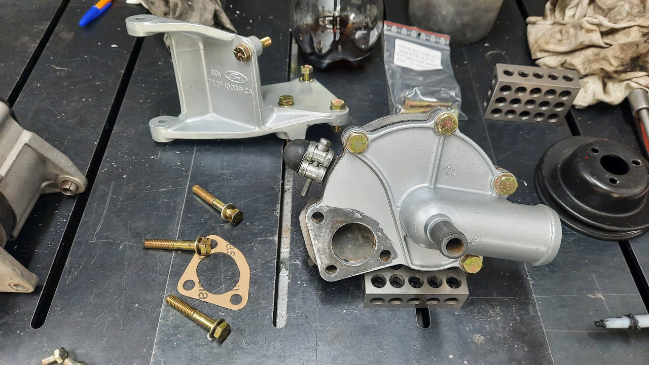 Tu już minęły dwa dni. Zabrakło śrubek calowych, a nie chciałem tego skręcać tymi parchami. Pompę wody domyłem, a tylną pokrywę pomalowałem.