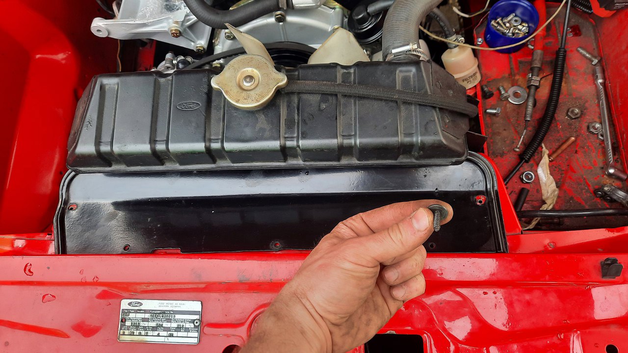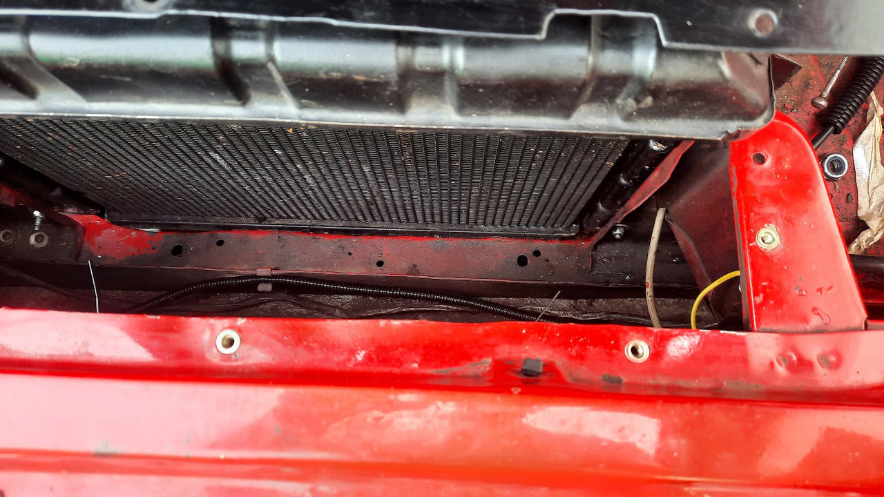 Jest też owiewka zasłaniająca dziurę przed chłodnicą. Oryginalnie przykręcana wkrętami, ale ani mi, ani właścicielowi się to nie podoba.