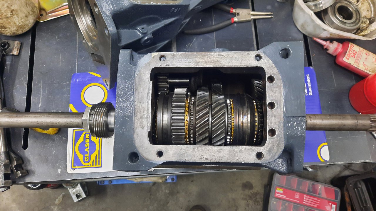 Dla przypomnienia z poprzedniej strony: mam obudowę skrzyni z włożonym wałkiem głównym...