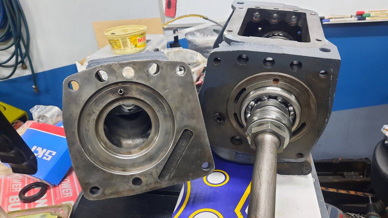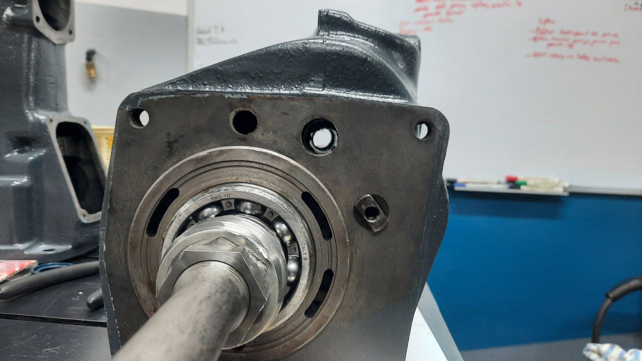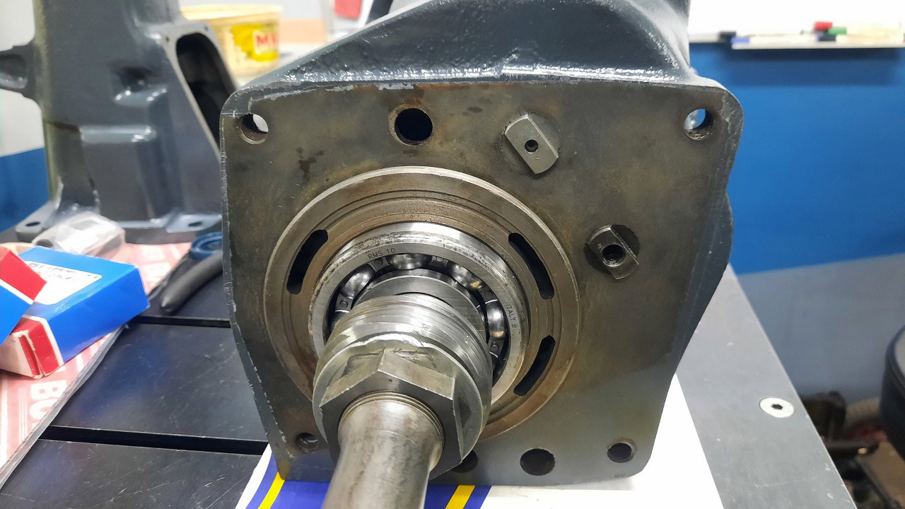 W ogonie skrzyni zostawiam panewkę, jest w dobrym stanie. Włożyłem nowy uszczelniacz.
