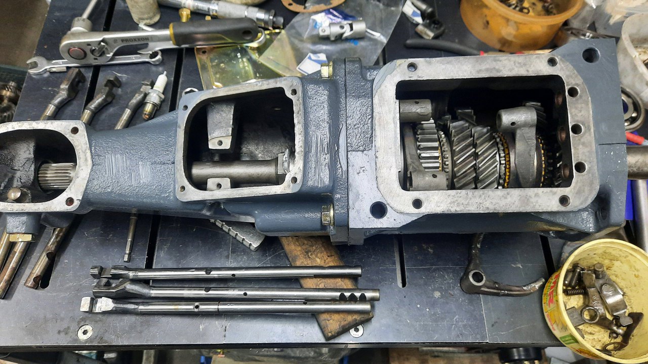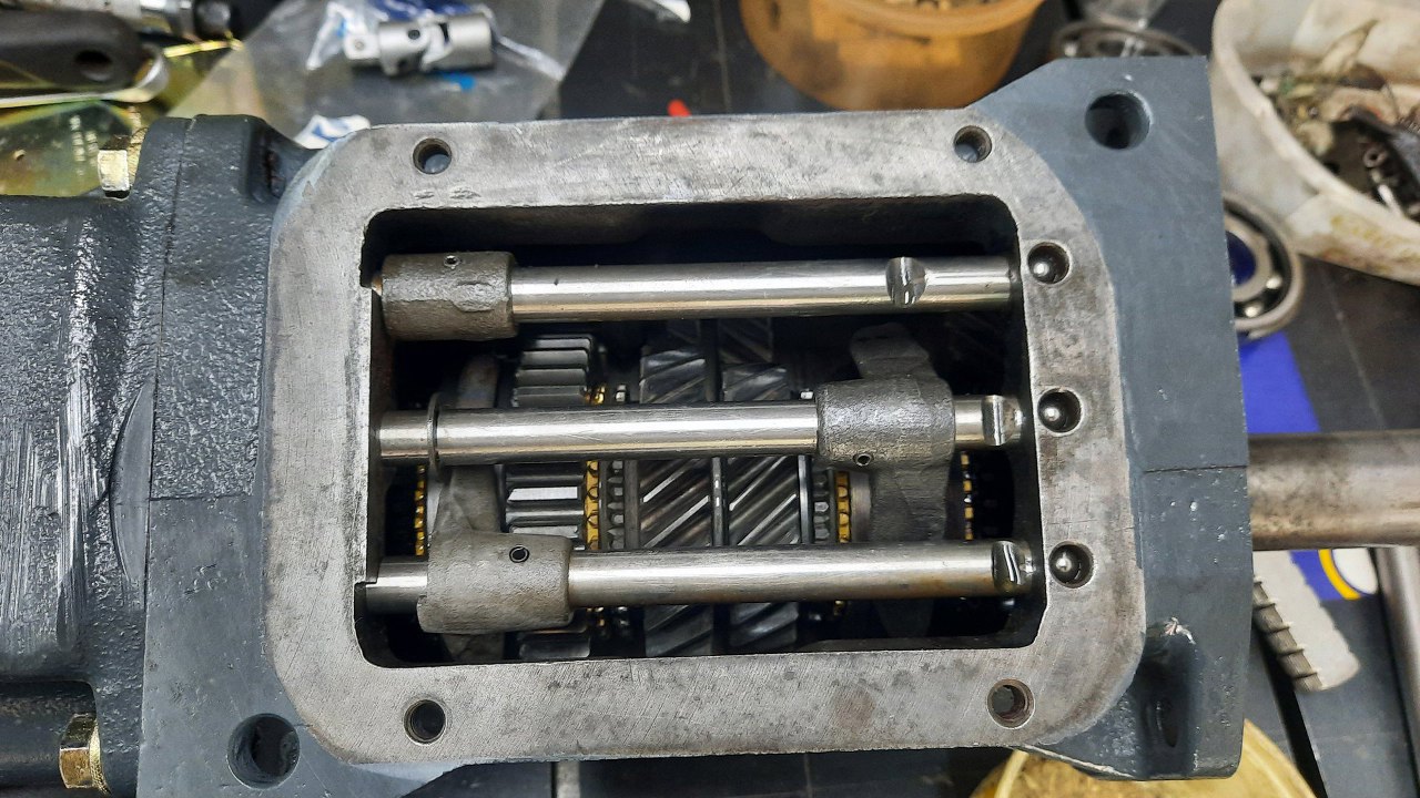 Włożyłem na miejsce widełki biegów i przygotowałem pręty wybieraków.