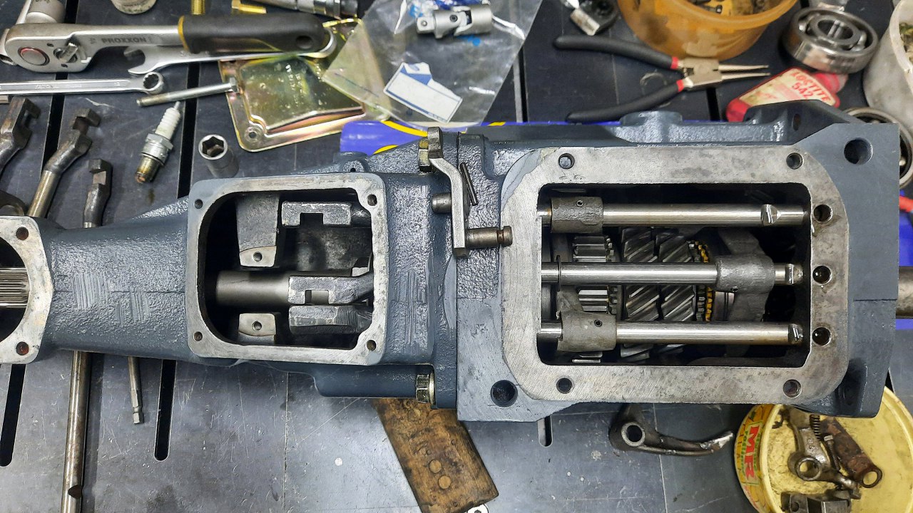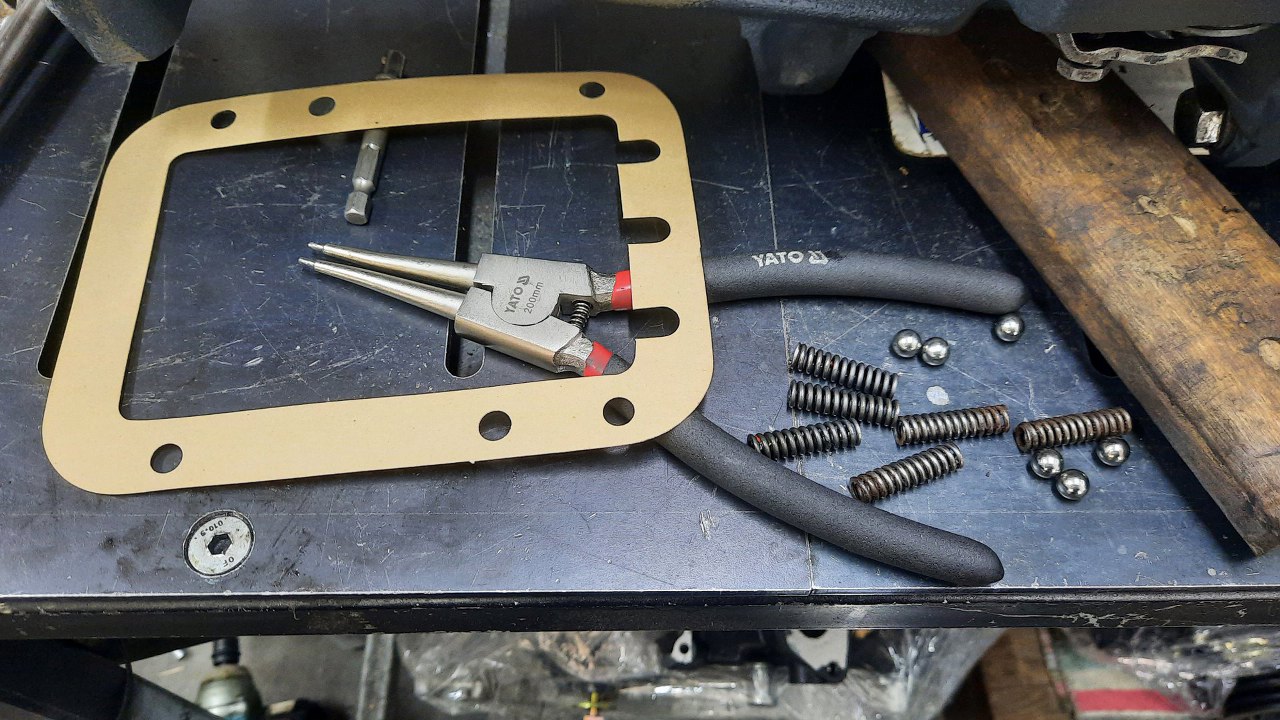 I włożyłem do skrzyni. To właśnie to stawia opór przy przechylaniu mocniej dźwigni zmiany biegów, żeby wrzucić wsteczny bieg.