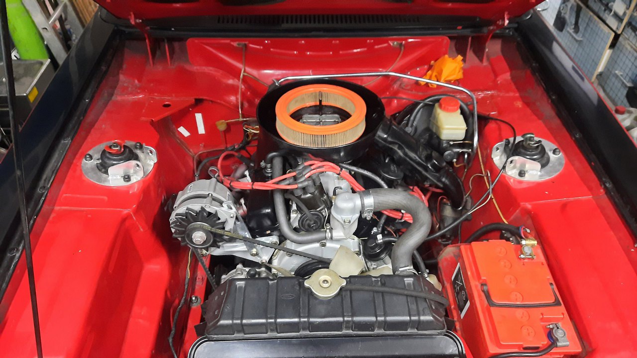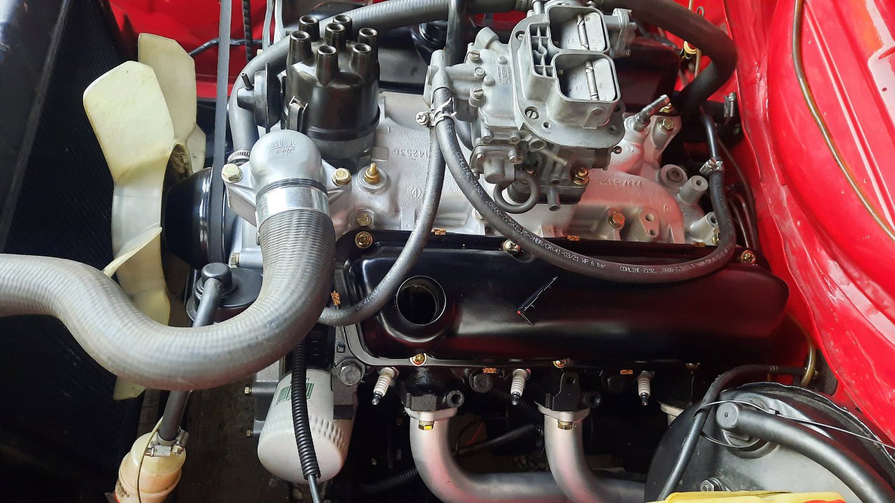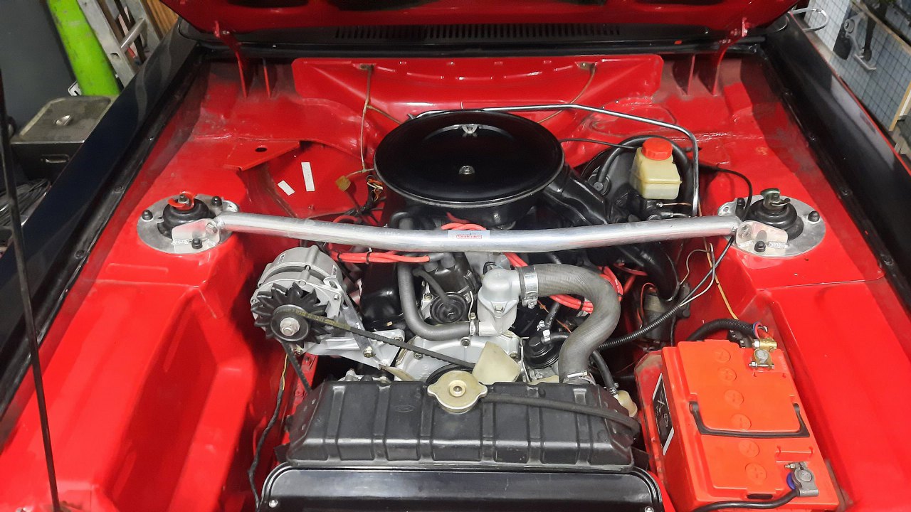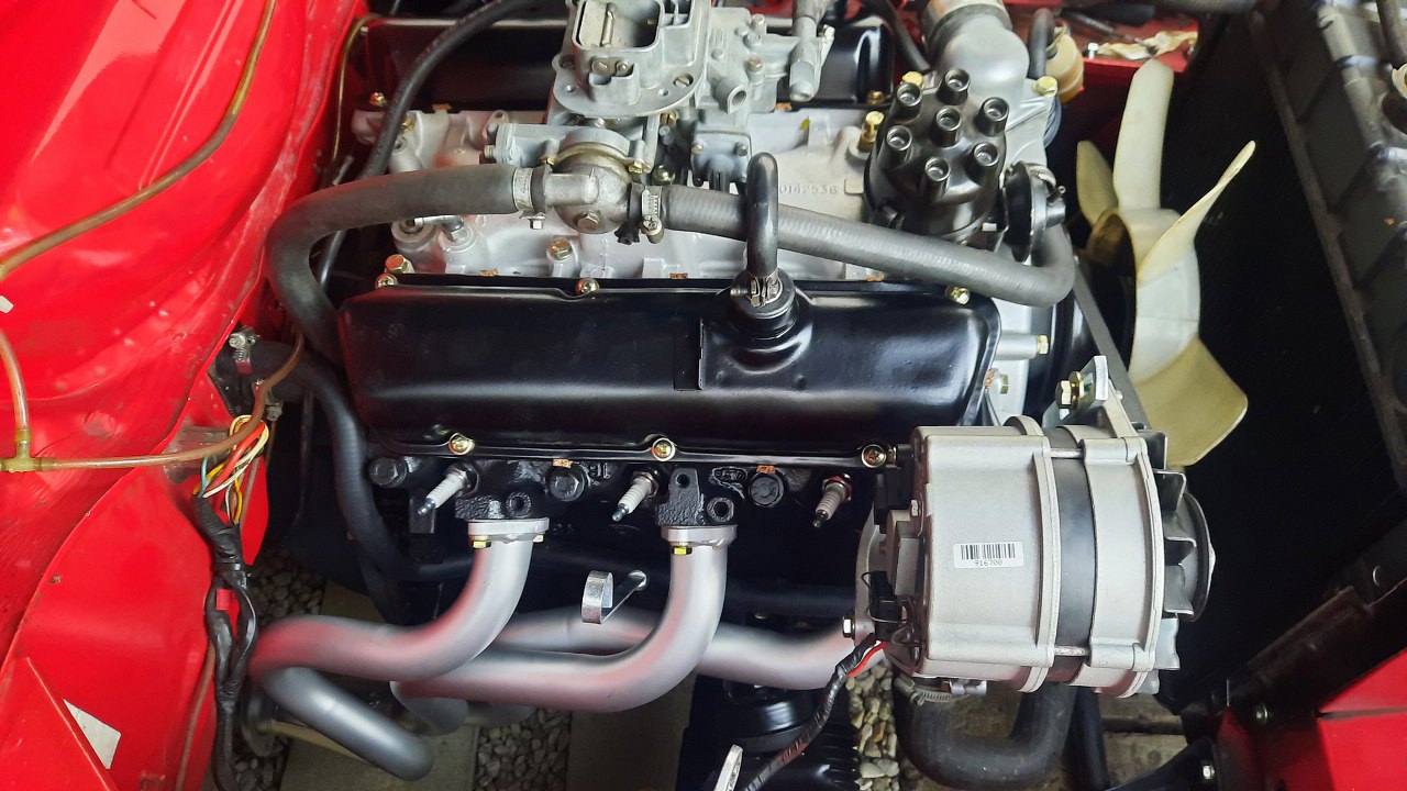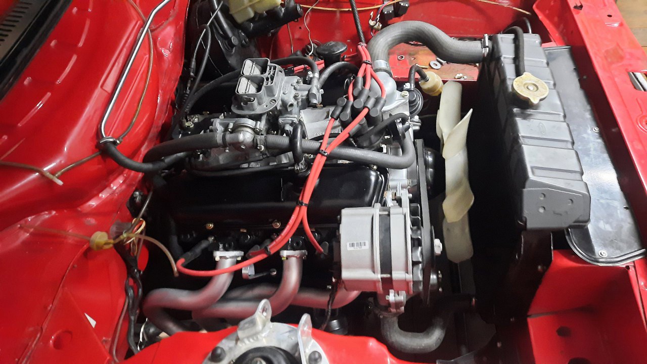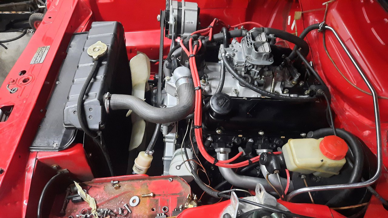 Tu już na silniku. Zaczęliśmy już podłączać drobiazgi, takie jak odma, czy grzałka ssania przy gaźniku. Założone zostały też kolektory wydechowe i alternator.