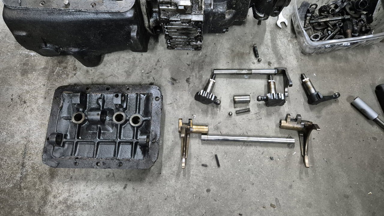Z pokrywy bocznej musiałem wymontowac wszystkie części mechanizmów zmiany biegów.