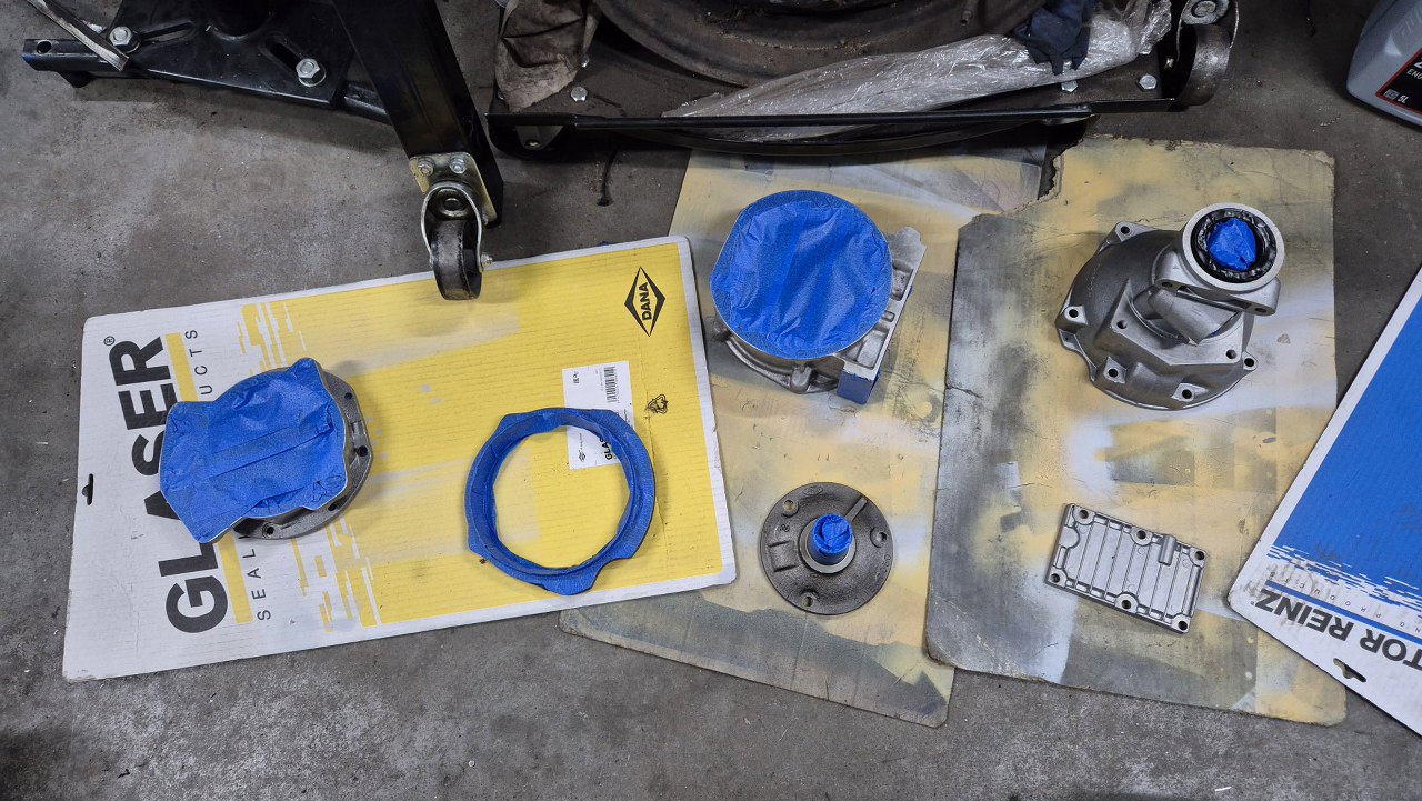 Po ich dokładnym wymyciu i wydmuchaniu resztek ścierniwa, zabezpieczyłem je do malowania.