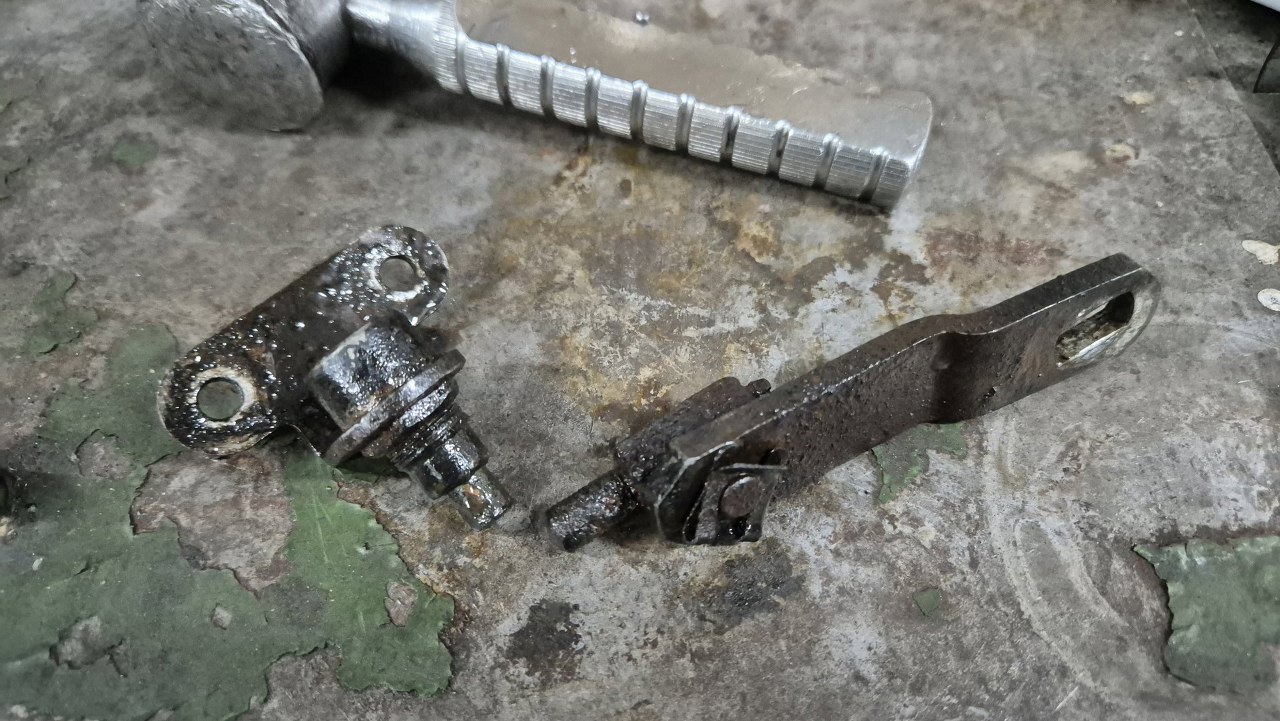 Przygotowałem też śrubki do cynkowania. Z detali to musialem odkręcić resztkę czujnika świateł cofania i resztkę pręta łączącego dźwignię biegów z tym ramieniem przy skrzyni.