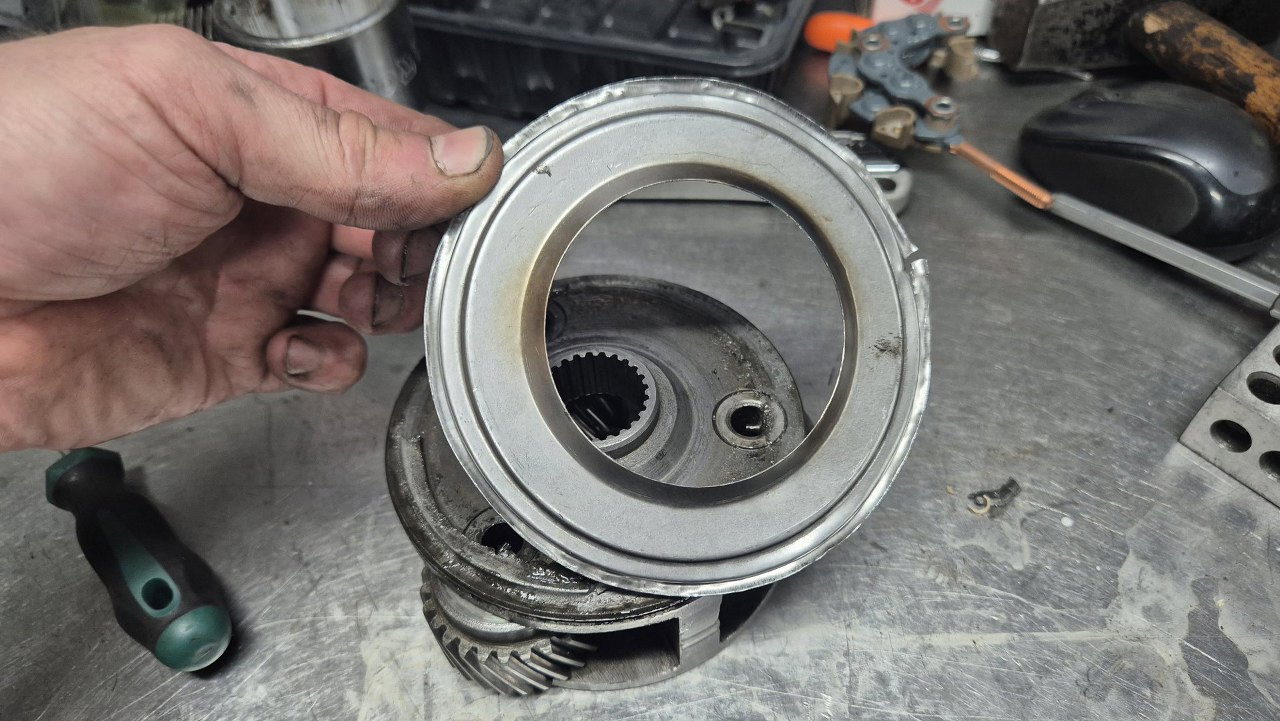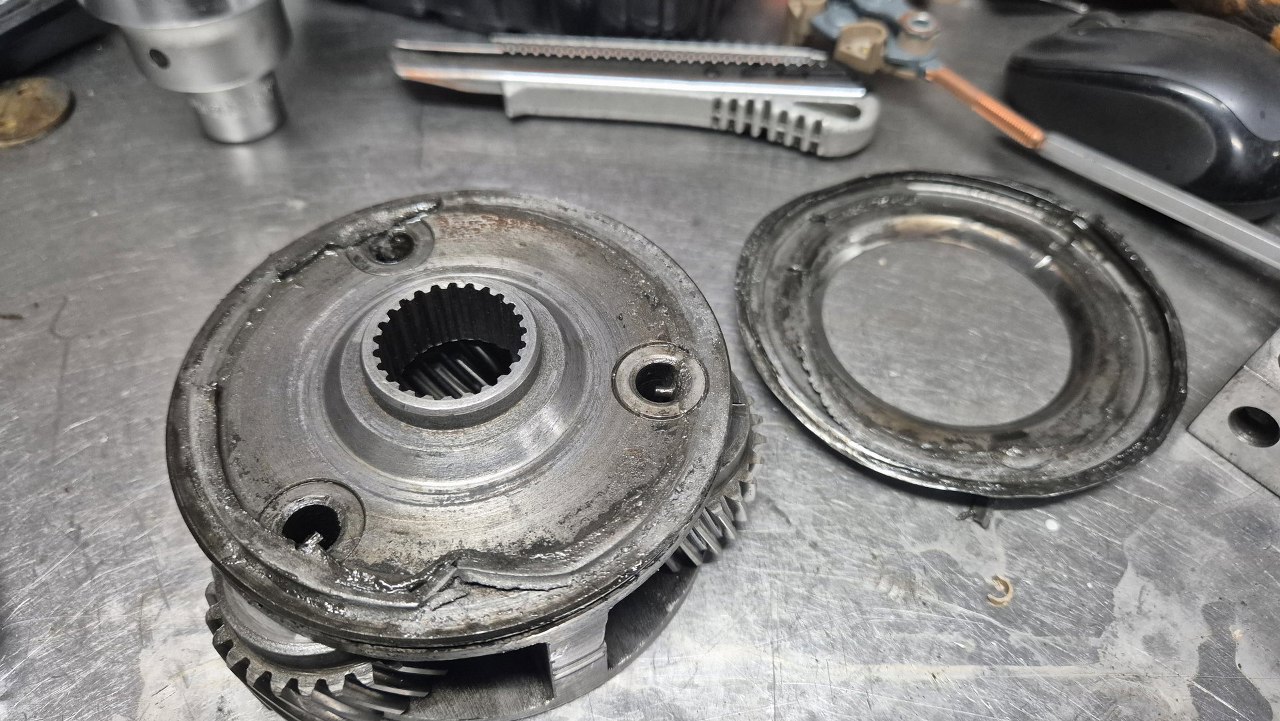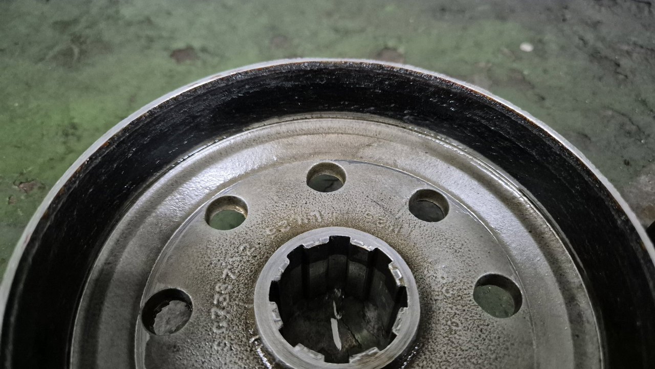 Przygotowując listę części do kupienia musiałem jeszcze w kilka miejsc zajrzeć tu akurat jest zestaw bębna przekładni planetarnej z łożyskiem i mocowaniem. Bęben na pewno jest do wymiany, bo ma mocno popękane okładziny cierne. Co ciekawe, część tą można odesłać i dostać za nią zwrot kaucji.