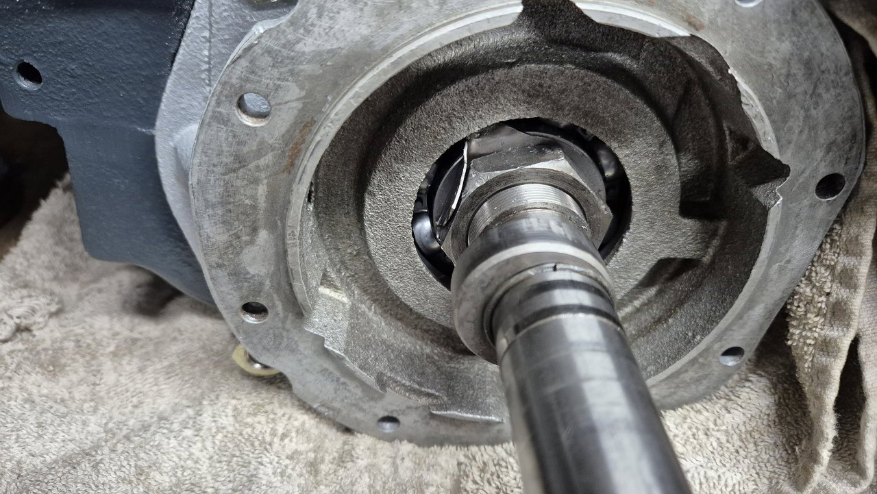 Potem założyłem uszczelniacz i przykręciłem flanszę pod wał napędowy.