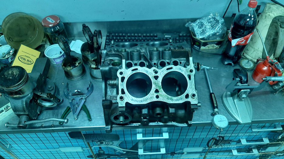 Następnie blok pojechał do szlifierni, gdzie oprócz tych rzeczy został jeszcze splanowany na dwóch płaszczyznach pod głowice, założone zostały nowe tłoki i wyważny został układ korbowo-tłokowy.