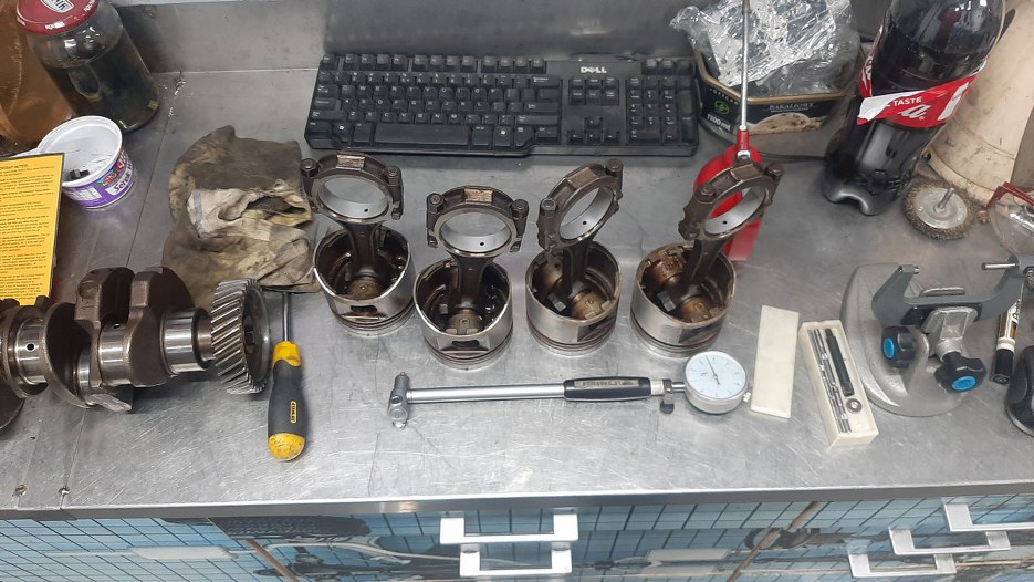 Potem zmierzyliśmy tłoki i wał z panewkami.