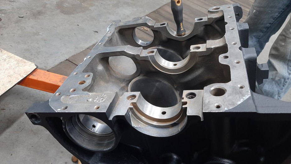 Ustaliliśmy z Adamem, właścicielem silnika, że będę przy tym coś robił tylko przy nim - bo chce pomóc, ale też i napawać się widokami :). Przed jego wizytą jedynie pomalowałem blok na czarno, żeby był gotowy. Gdy już się spotkaliśmy, to zaczęliśmy od wybicia panewek wałków rozrządu i balansu z bloku.