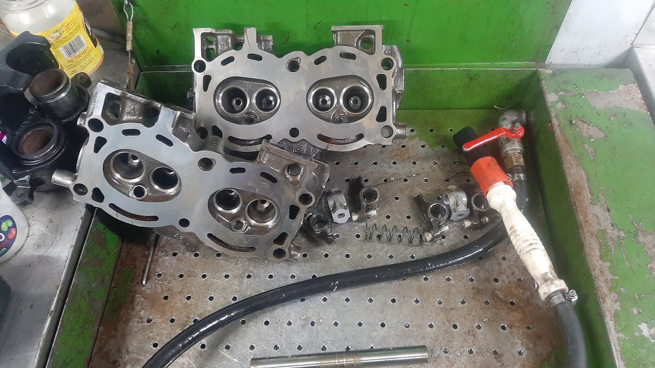 Wszystko trafiło do myjki. Głowice rzeczywiście wyglądają na zrobione, dlatego składamy je już teraz, bez oddawania do szlifierni.