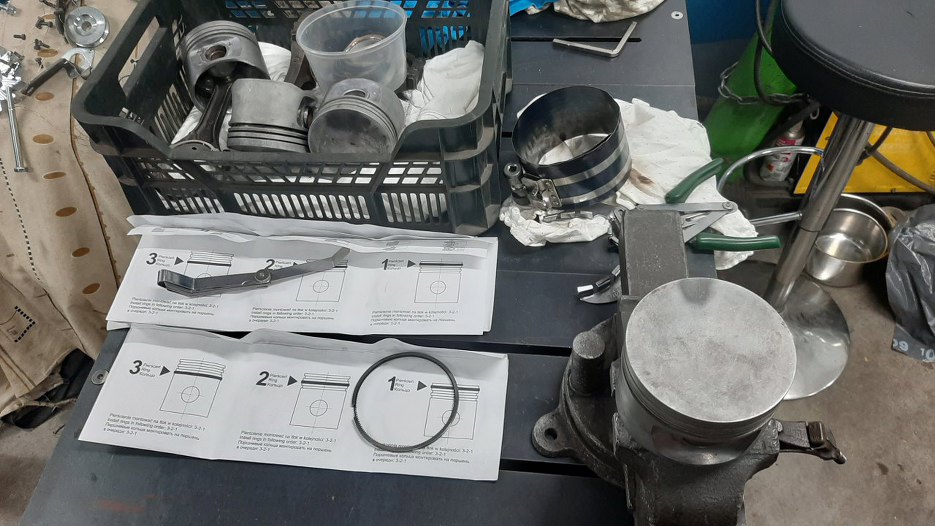 Ale najlepsze przed nami - mam właściwe pierścienie! Tłoki były umyte już wcześniej, więc możemy od razu przystąpić do montażu. Jak ja przygotowywałem pokrywę rozrządu to Adam sprawdził i poprawił wszystkie luzy na pierścieniach.