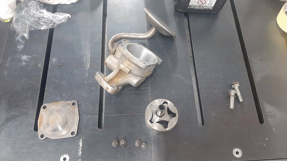 Rozkręciłem pompę oleju. Jest używana, ale wygląda nadspodziewanie dobrze. Oczywiście porządnie ją wyczyściłem.