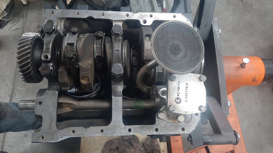 Przykręciłem pompę oleju do bloku i nałożyłem smaru montażowego.