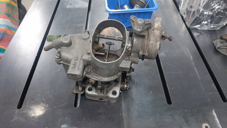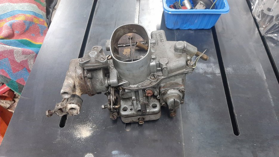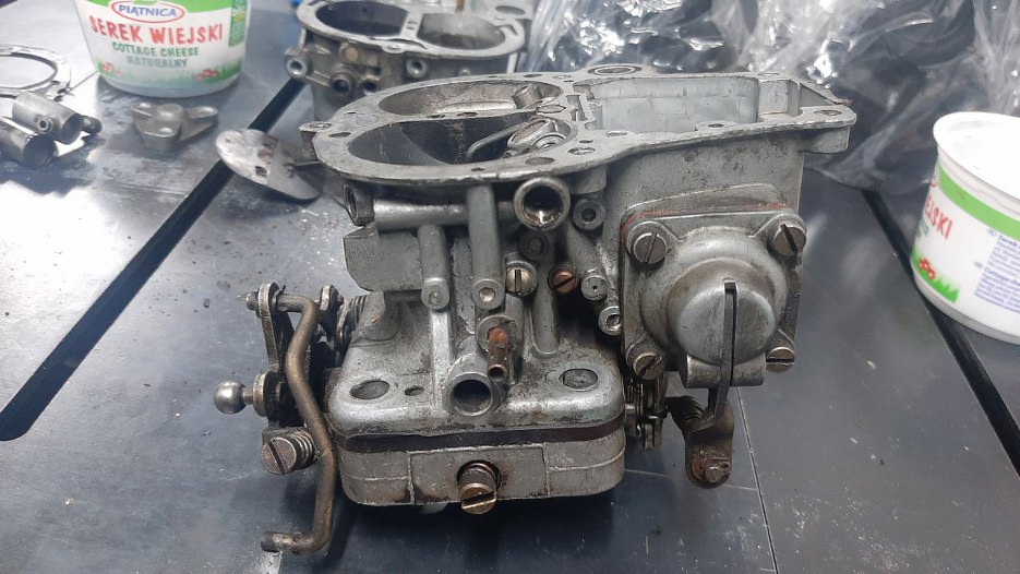 Następnym kawałkiem silnika, za który się biorę, jest gaźnik. Jest to Solex TDID, dość starej konstrukcji. Koszmarny do zregenerowania i wyregulowania :).
