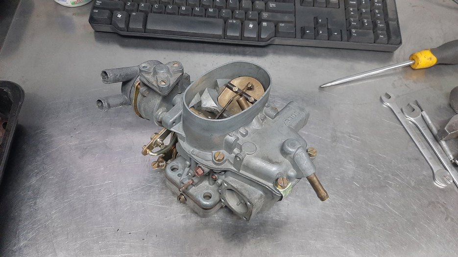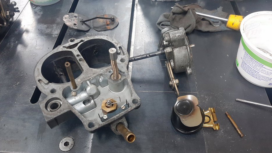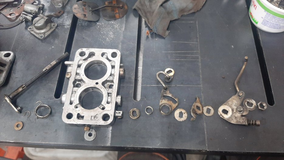 Potem nagle wszystko zostało wyczyszczone, ocynkowane, kupiony nowy zestaw naprawczy (niestety niekompletny, ale tylko takie są dostępne). Zanim się zorientowałem, złożyłem już podstawę gaźnika.
