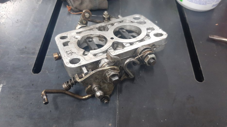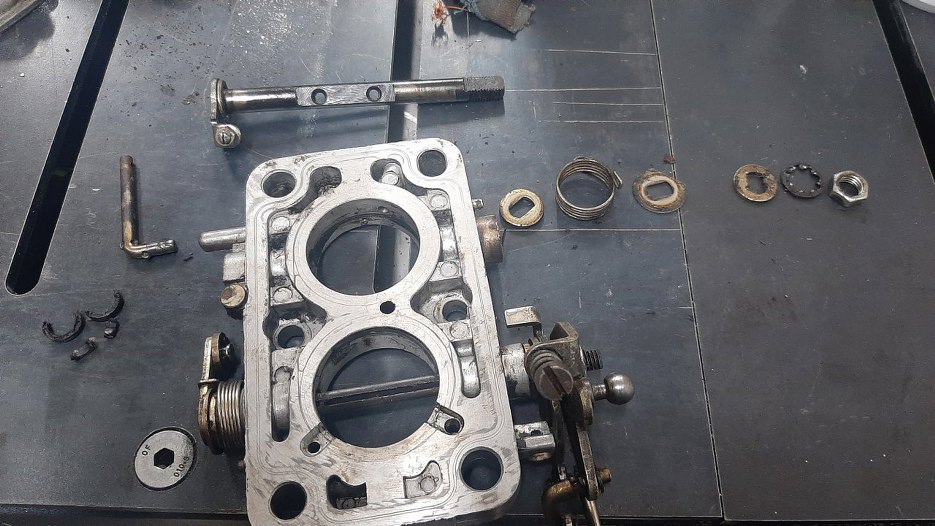 Odkręciłem też podstawę gaźnika z mechanizmem przepustnic.