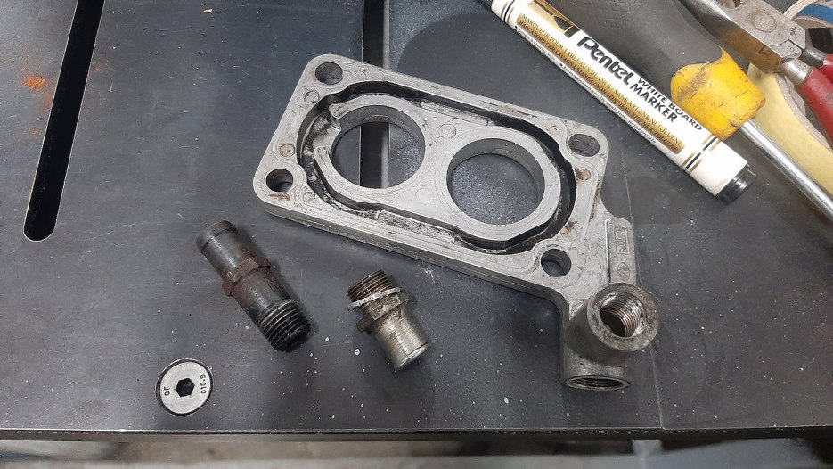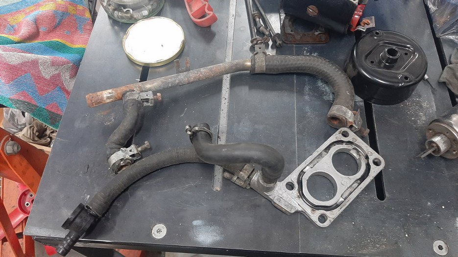 Przy okazji szykowania śrubek gaźnika do ocynku przygotuję też stalowe części z podkładki pod gaźnik i rurkę układu chłodzenia.