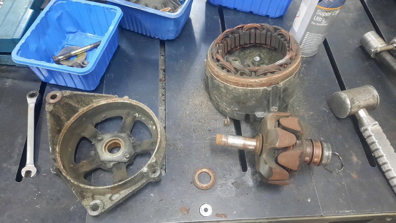 Po niedługim czasie miałem już części stalowe ocynkowane, aluminiowe wyszkiełkowane, a uzwojenie wyczyszczone i pomalowane.