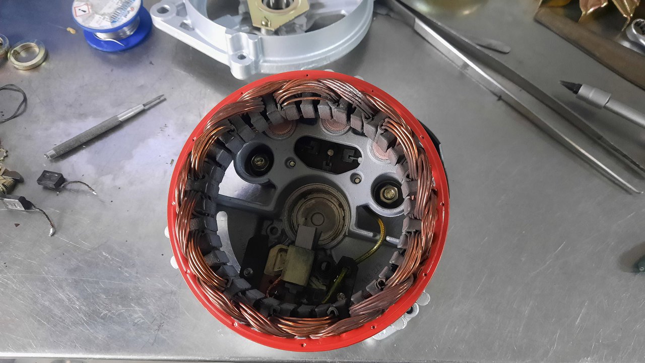 Pod tym kryją się kolejne 3 diody wciśnięte w korpus alternatora. O tyle ta konstrukcja jest trudna w rozkładaniu (i później składaniu), że wszystko jest połączone lutowaniem.