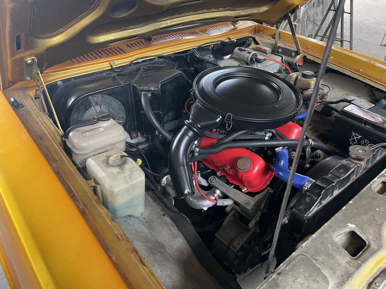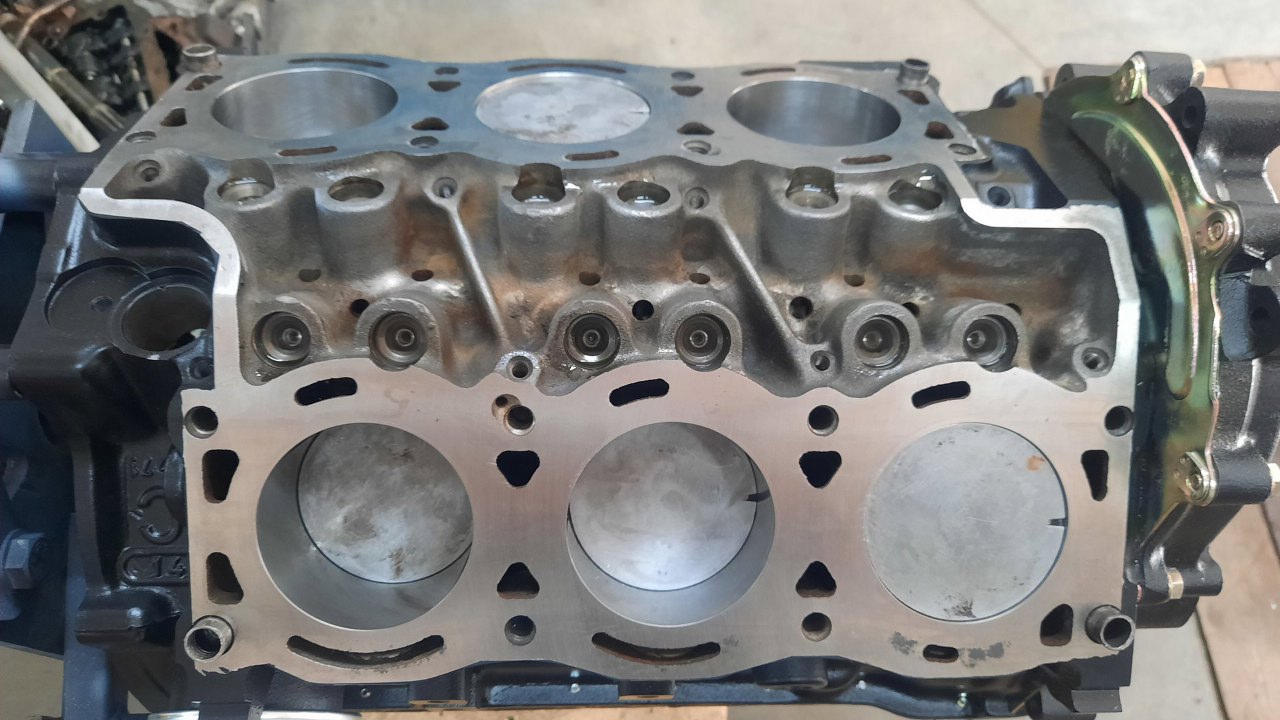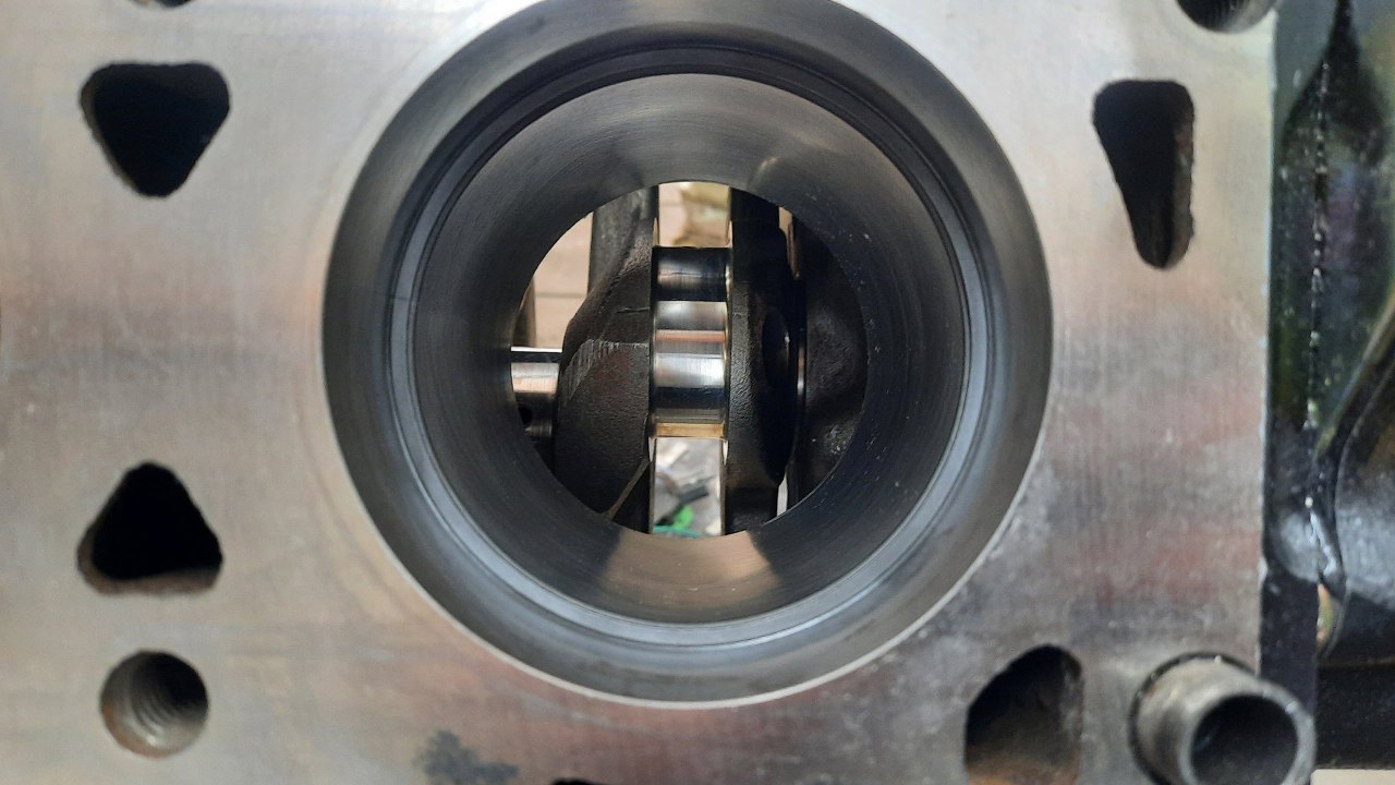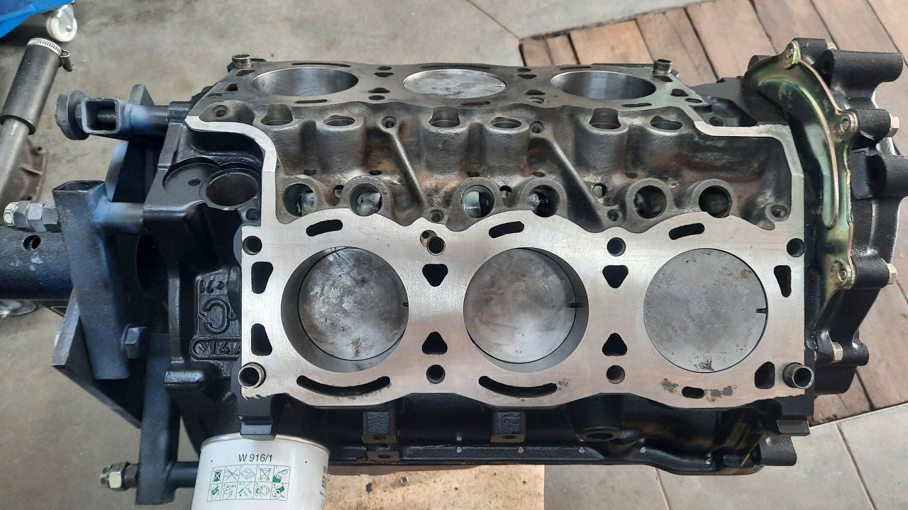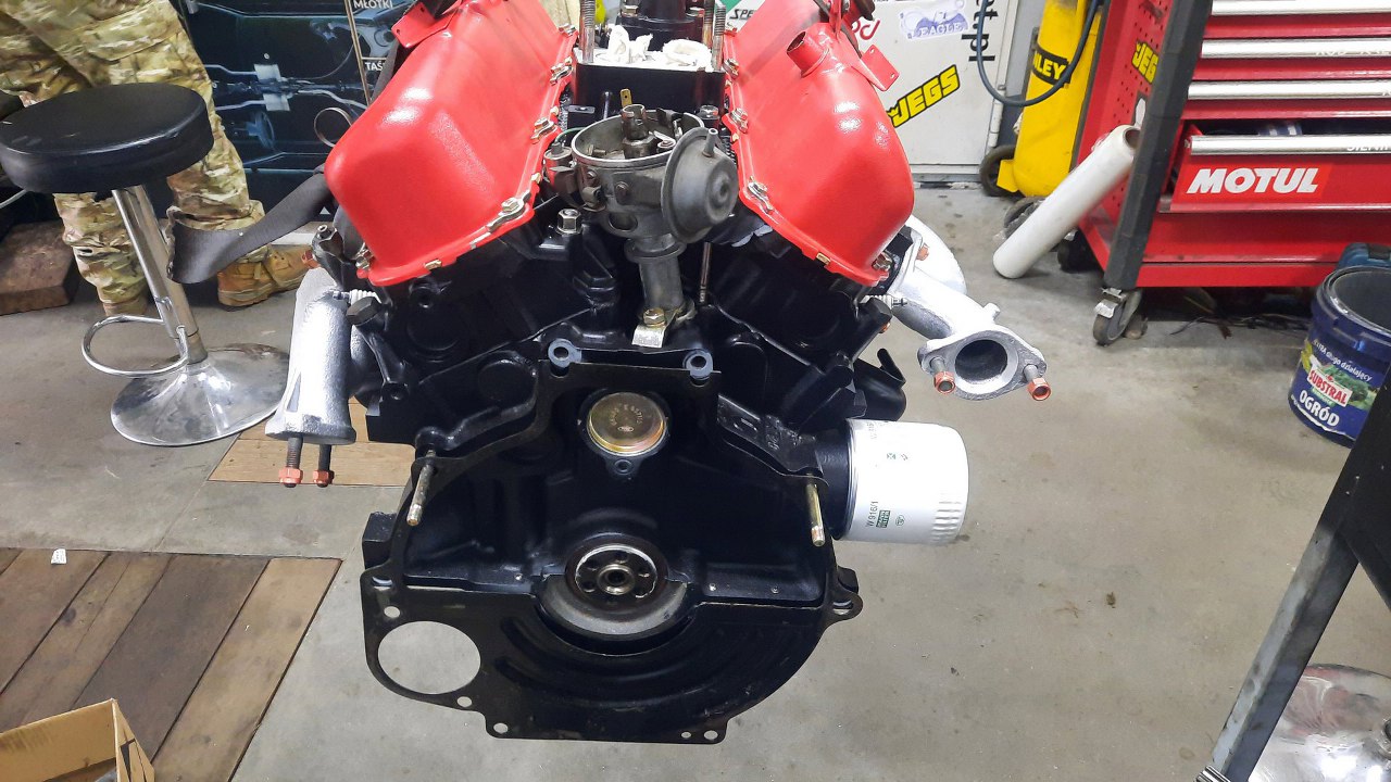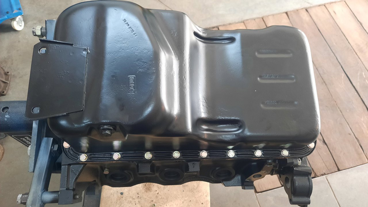 Gotowe. I tu kolejna ciekawostka, na misce olejowej. Ma ona dospawaną blachę idącą w stronę dzwonu skrzyni biegów. Póżniejsze V6 już tego nie mają.