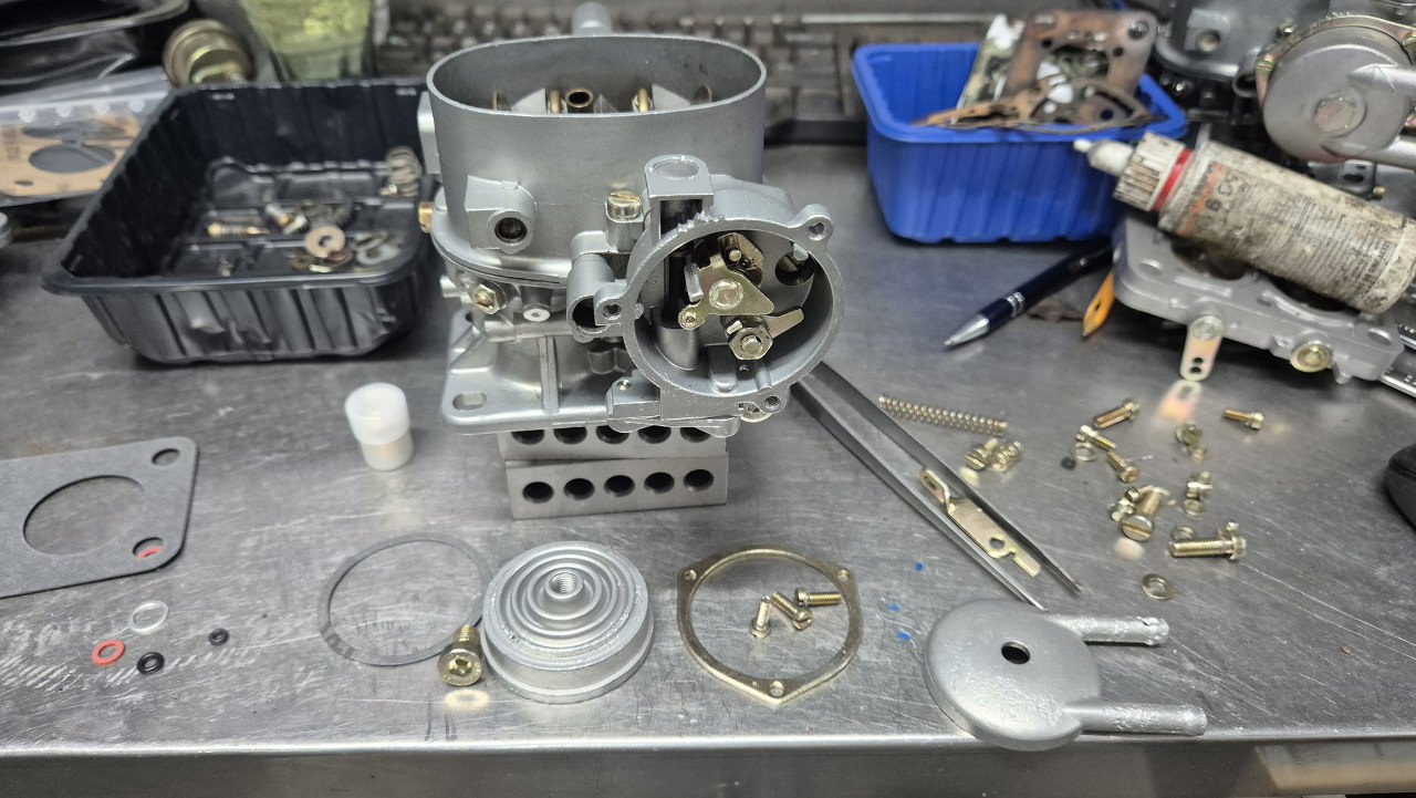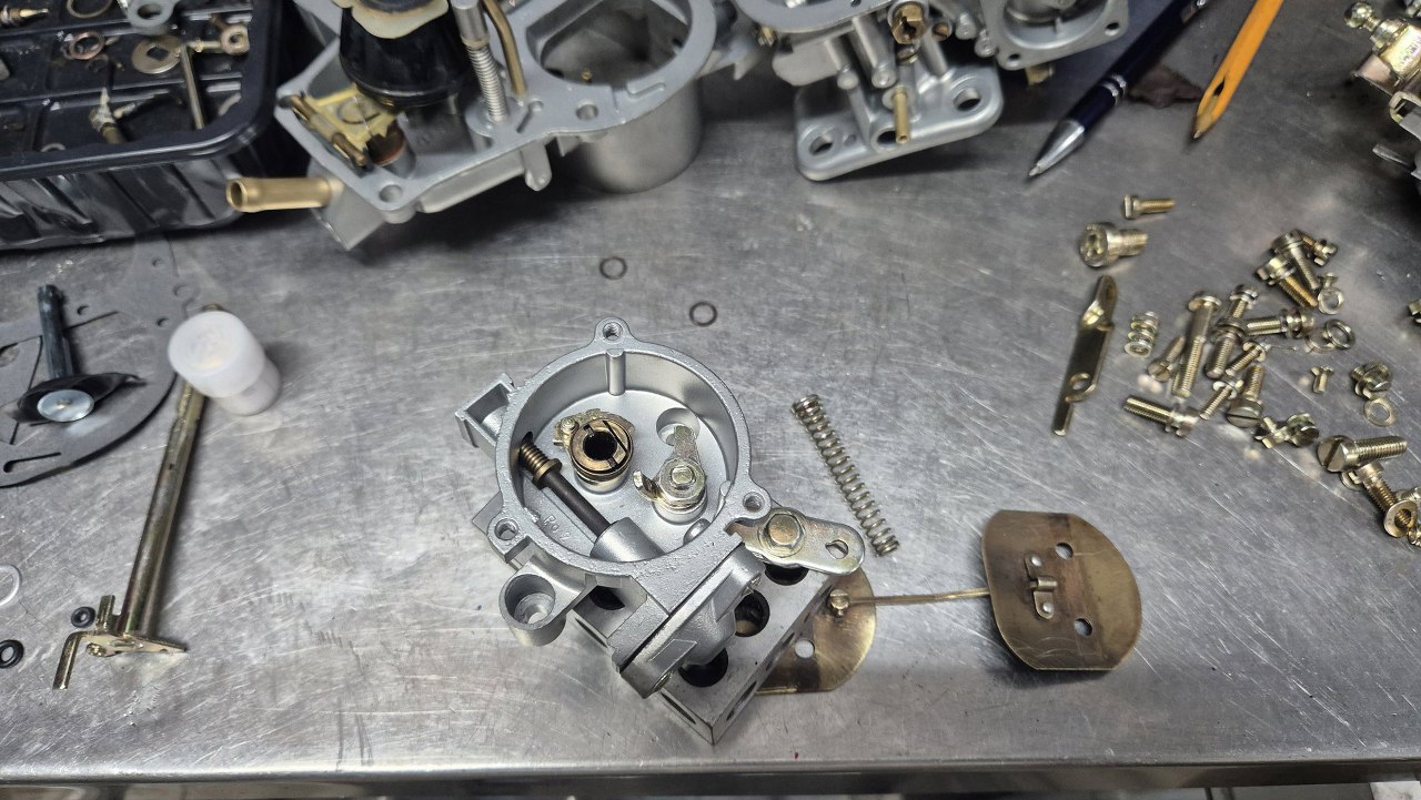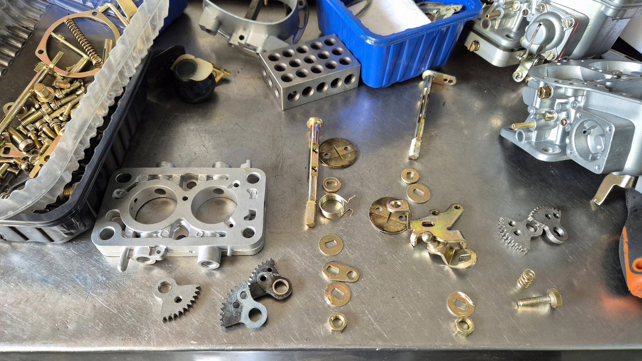 Po oczyszczeniu obudowy i ocynkowaniu części można składać gaźnik.