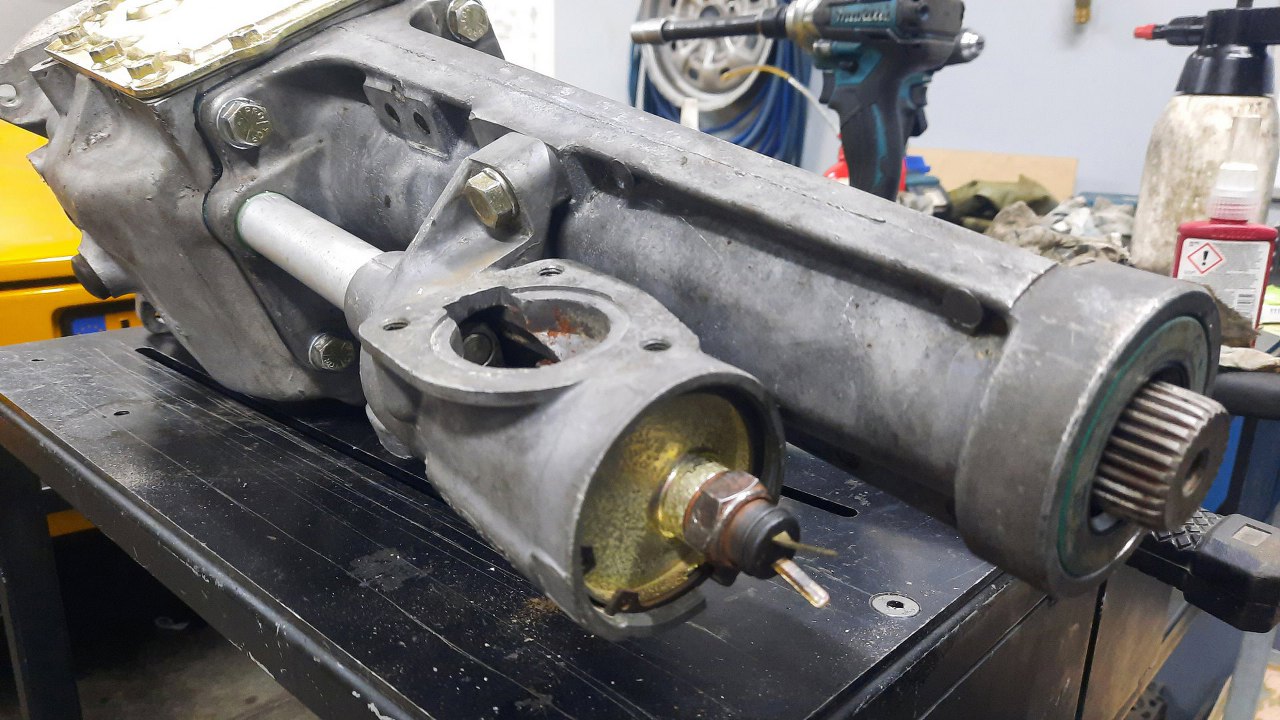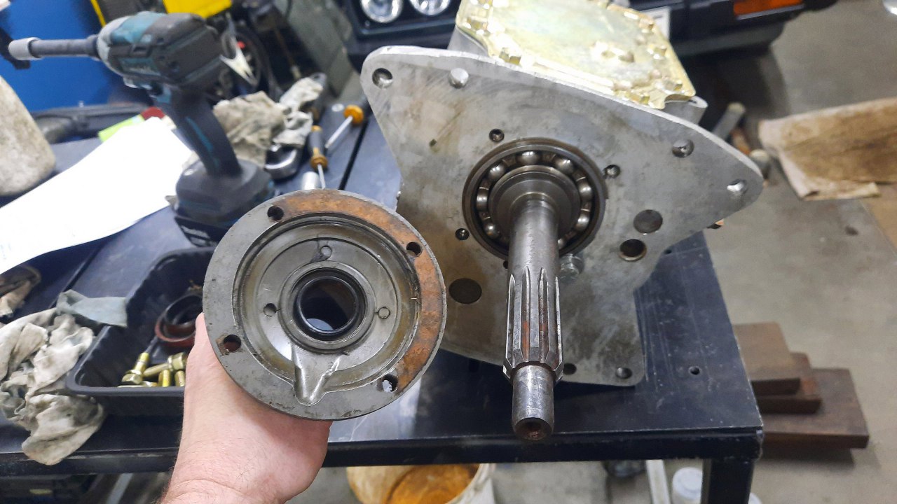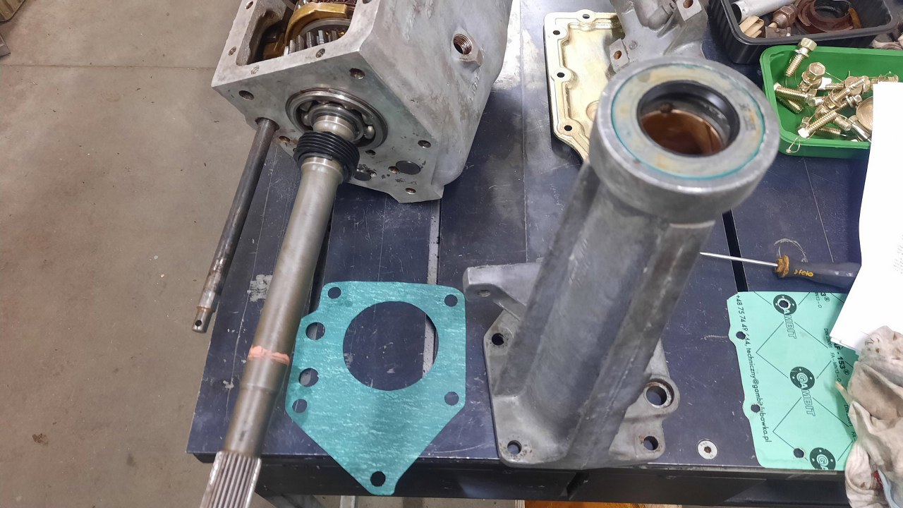 W ogon skrzyni wbiłem nowy uszczelniacz wału. szczelek nie miałem, ale to nie jest problem - robię nowe.