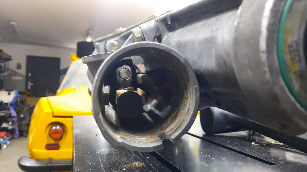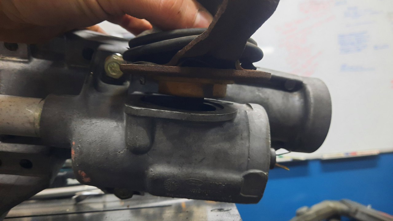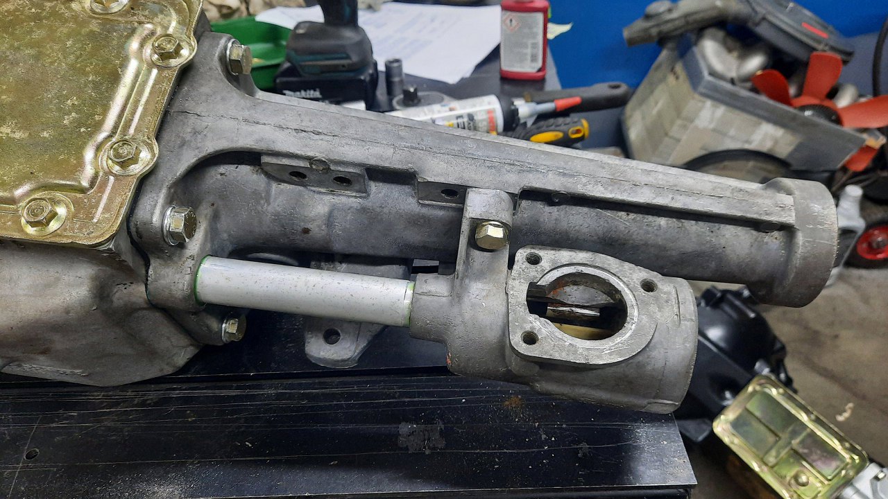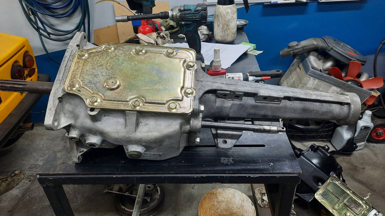 Ta część też jest od ciut innego modelu skrzyni - pordejrzewam, że od pick-upa. Podniesienie jej punktu mocowania powoduje, że możemy dać bardzo długą dźwignię i będzie miała w miarę normalny skok - idealnie pod pickupa. To niestety nie pasuje pod tą obudowę. Rozwiązanie jest dość proste - trzeba dorobić dystans pomiędzy te dwa elementy. Wszystko będzie działać jak trzeba, a gratis dostaniemy tzw. short-shifter :). Tą przeróbkę też jednak odkładamy na kiedyś.