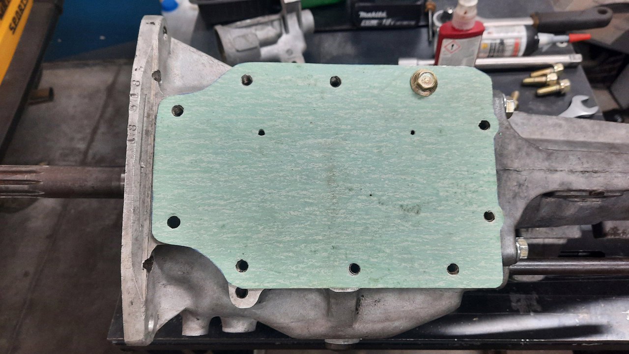 Uszczelkę pokrywy skrzyni też muszę dorobić. Stara nie byłą tylko ramką dookoła obudowy, ale była na całej powierzchni obudowy. Nie widzę w tym większego sensu, ale zrobiłem tak samo. Zrobiłem tylko dwa otworki w tych samych miejscach, co w oryginale, do odpowietrzenia skrzyni.