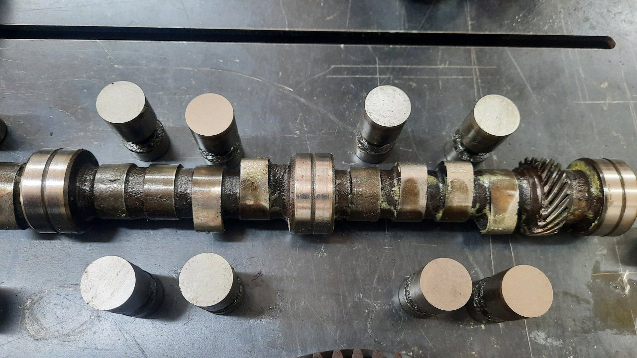 Wyjąłem popychacze zaworowe i wałek rozrządu. Tu w sumie niespodzianki nie ma - są standardowo, a nawet ciut bardziej, niż standardowo zużyte. Wałek ma wytarte krzywki, a niektóre popychacze mają ubytki materiału. Wszystko leci na złom.