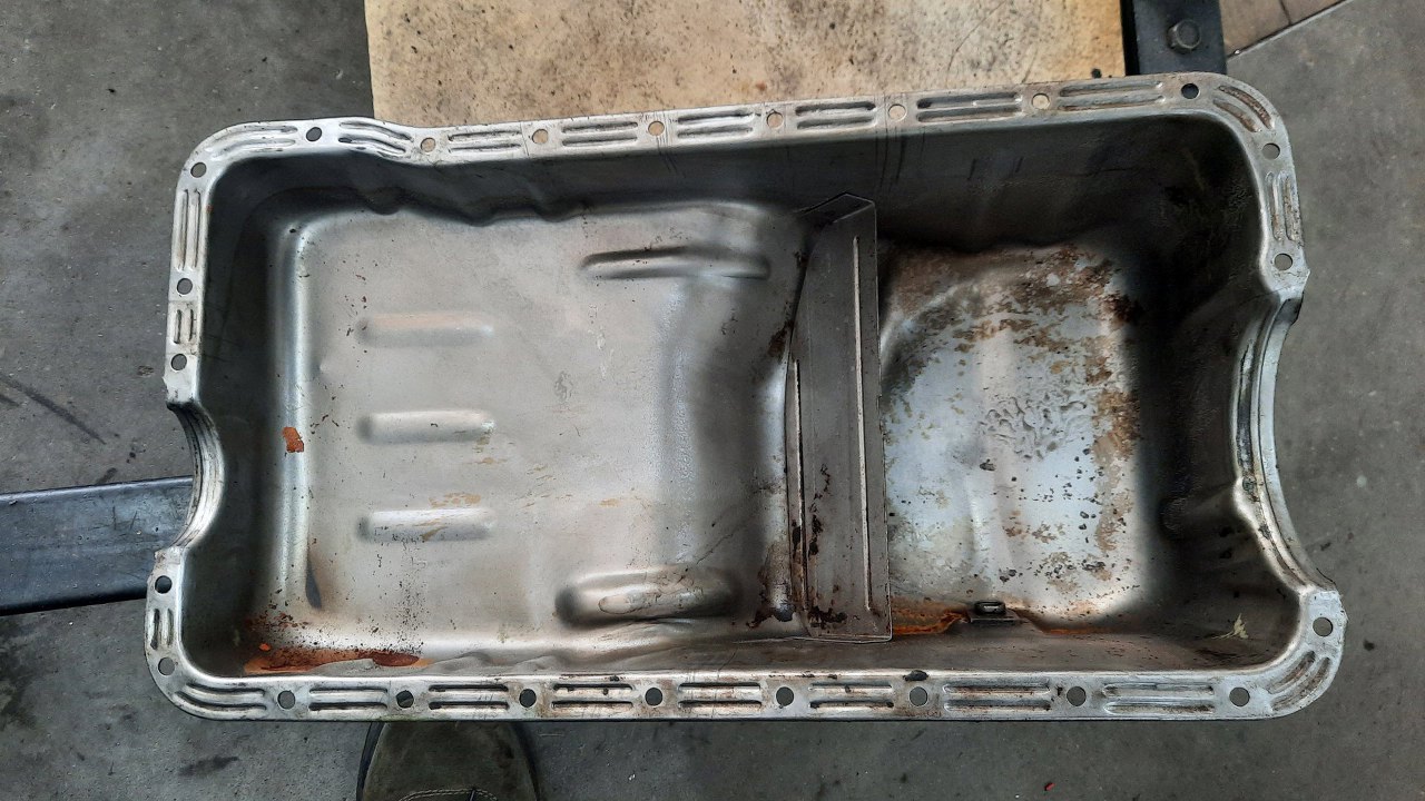 Miska też była kiedyś umyta, ale juz nie była posmarowana smarem, jak reszta silnika, dlatego jest nieco zardzewiała.