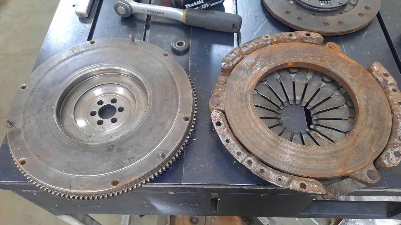 Ponieważ całość układu korbowo-tłokowego będzie wyważana, przygotuję też koło zamachowe i docisk sprzęgła. Oddam je do szlifierni do planowania, a potem zostaną wyważone razem z wałem.