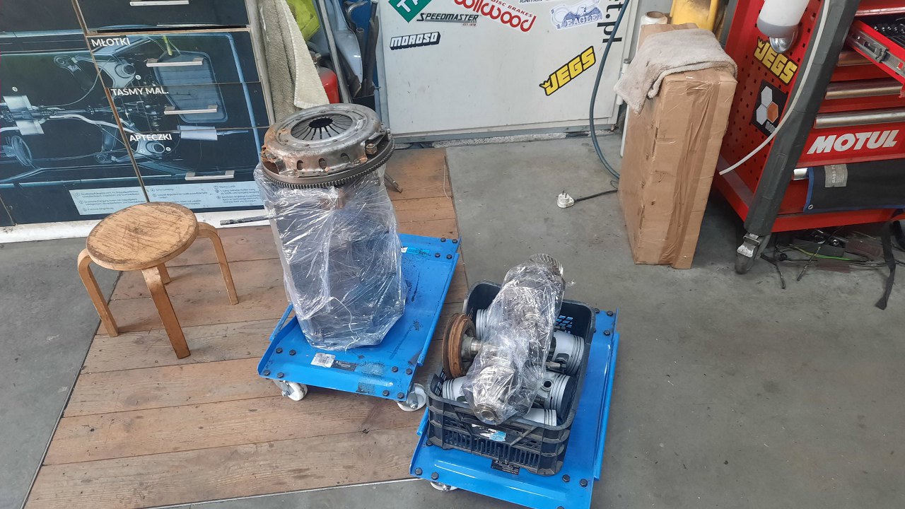 A tu już spakowane części czekają na wizytę w szlifierni.