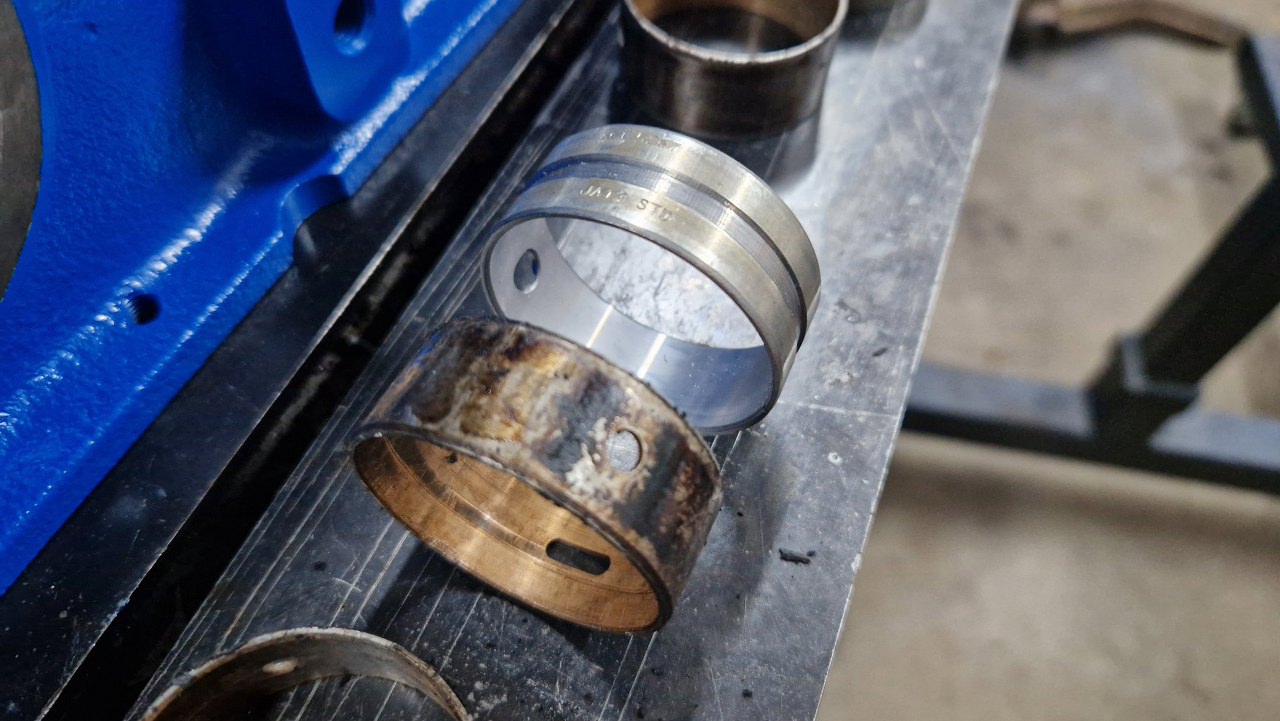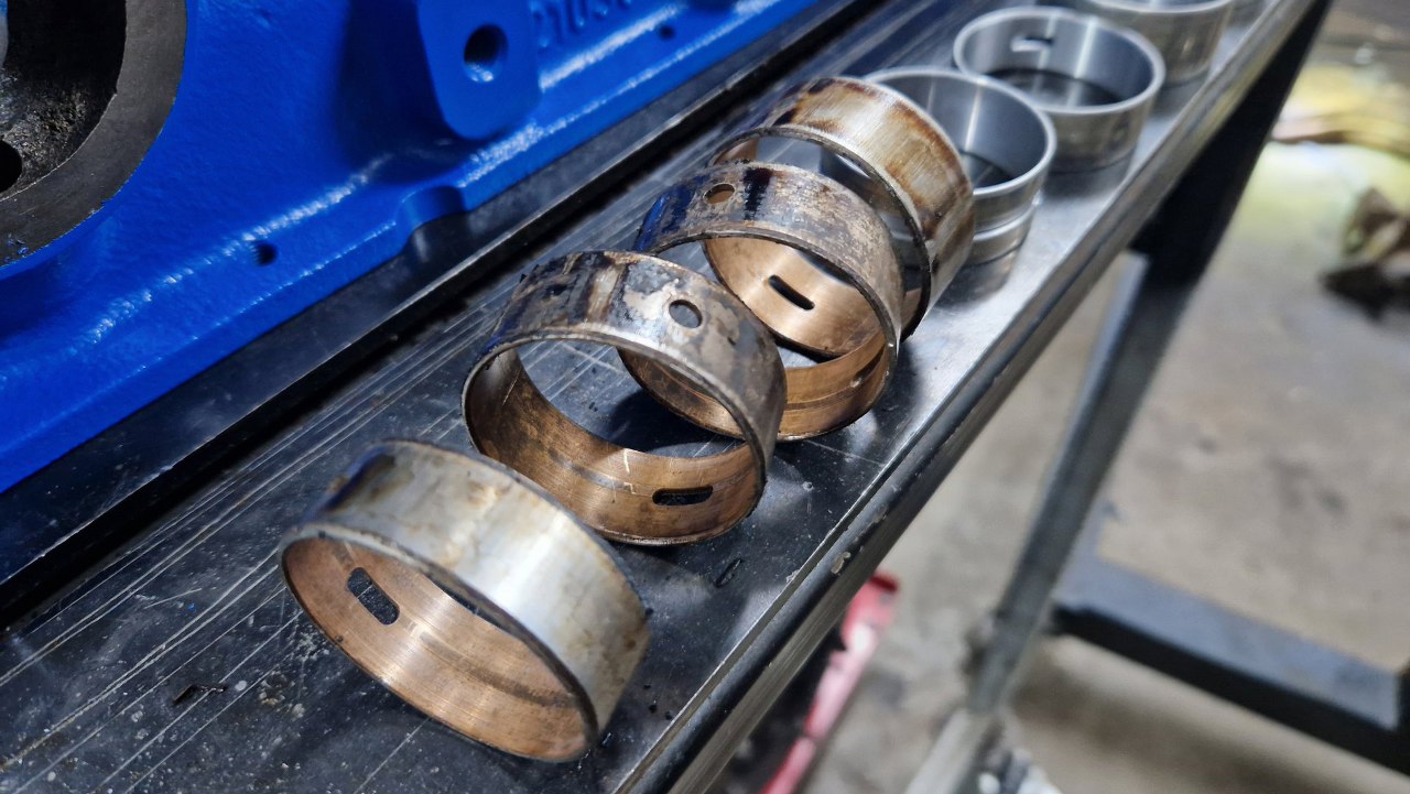 Ze szlifierni odebrałem blok z włożonymi panewkami, więc podczas ich wyjmowania oznaczyłem gdzie która była, żeby trafiły na swoje miejsca.