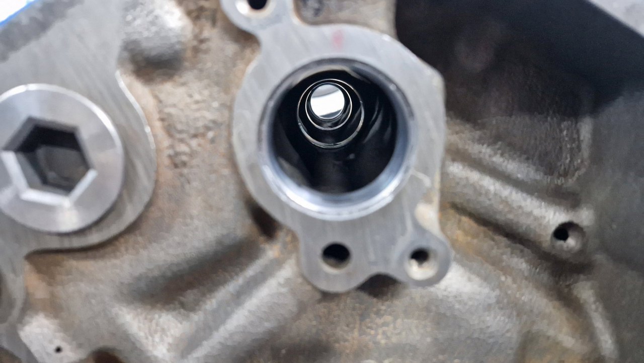 Przy okazji sprawdziłem miejsce na wale korbowym, po któym ślizga się simmering. Był tu już wyrobiony rowek, więc założę tuleję naprawczą.