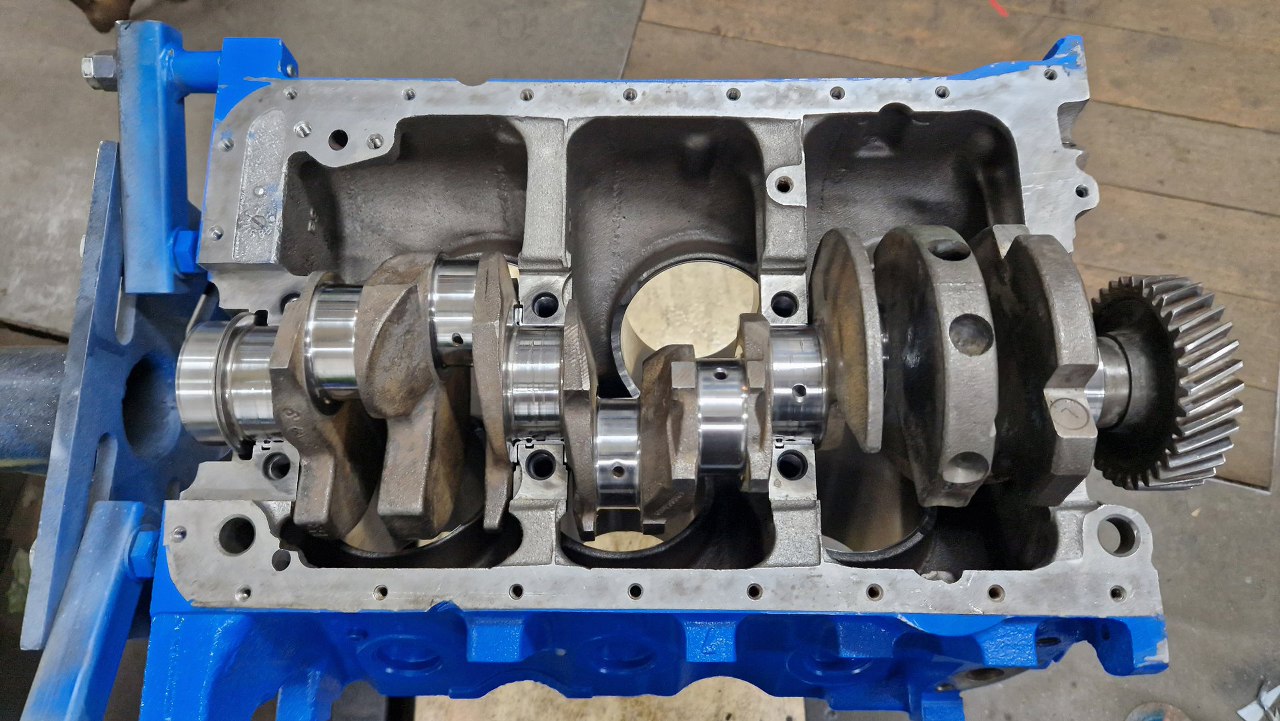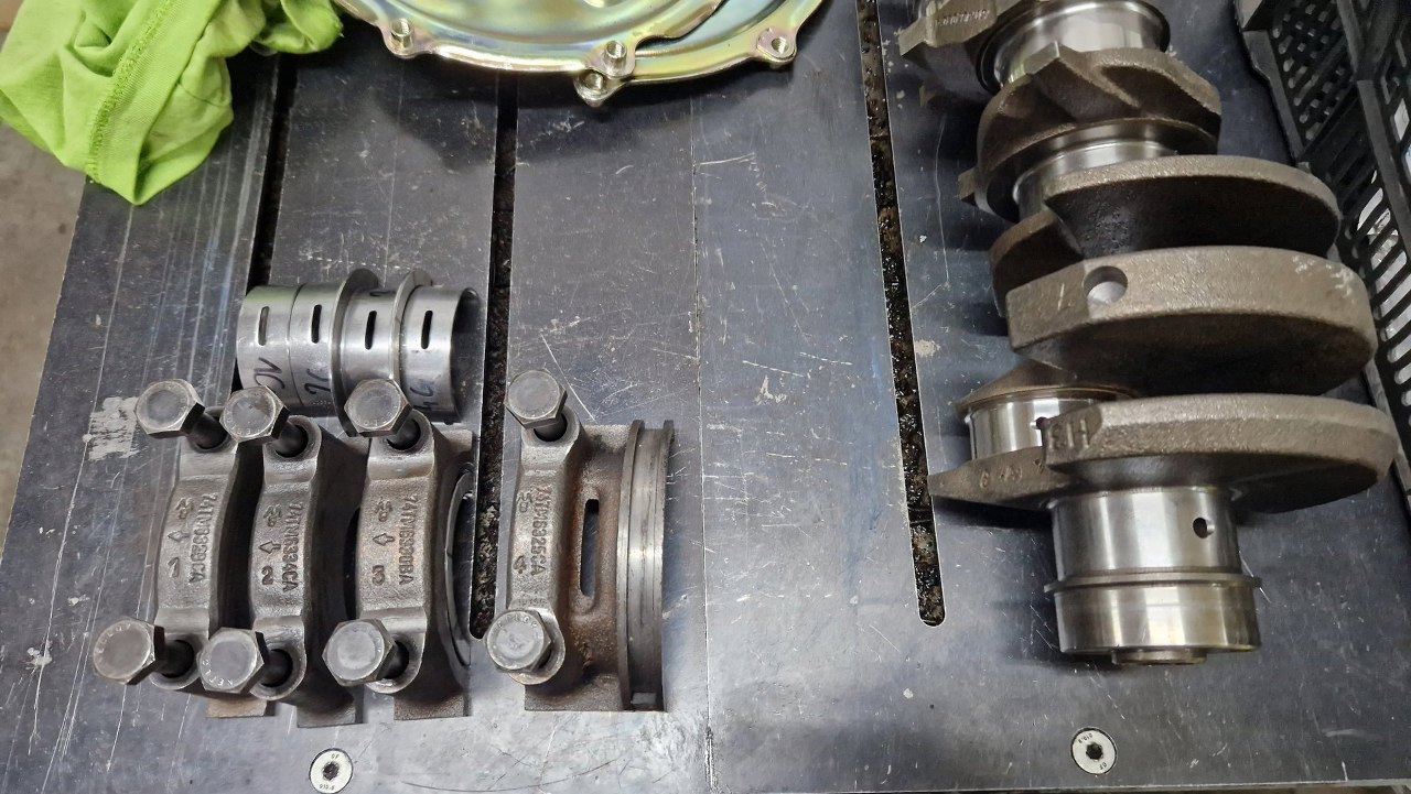 Zaczynam standardowo, od wału korbowego. Najpierw sprawdzenie miejsc na panewki głóne.