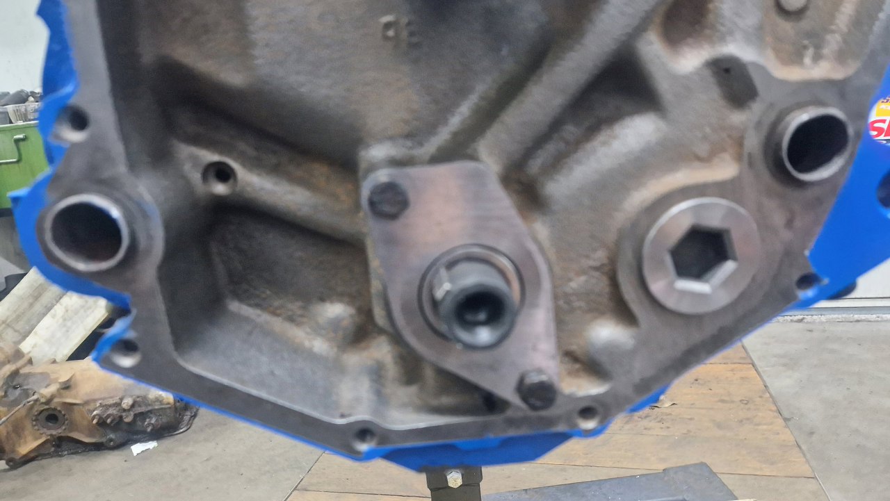 Zdjąłem jeszcze na chwilę silnik ze stojaka i wbiłem zaślepkę wałka z tyłu bloku.