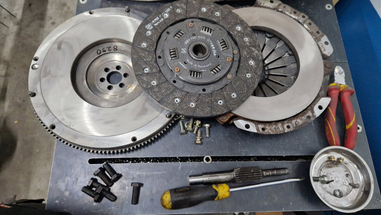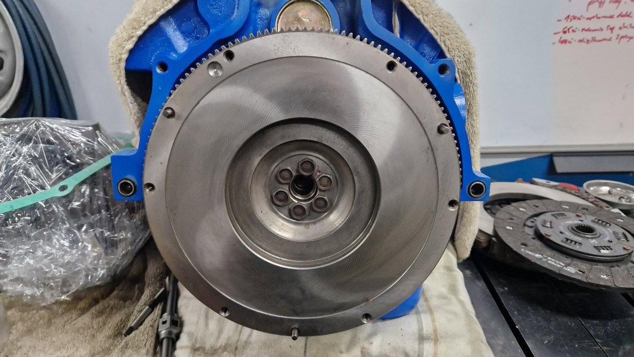 Przygotowane mam też już całe sprzęgło - koło i docisk są splanowane i wyważone, tarcza ma nową okładzinę.