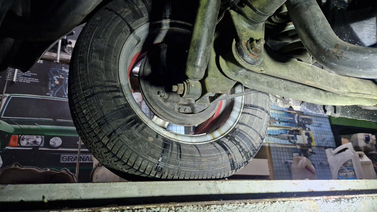 Z tyłu coś mocno cieknie po kole. Później okazało się, że to nie płyn hamulcowy, a olej z przeciekającego łożyska półosi.