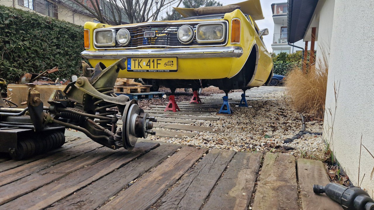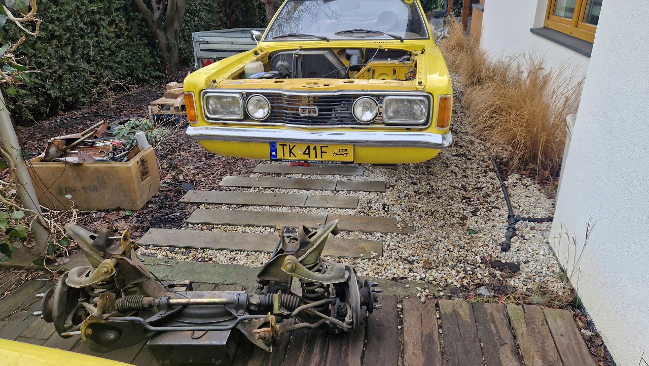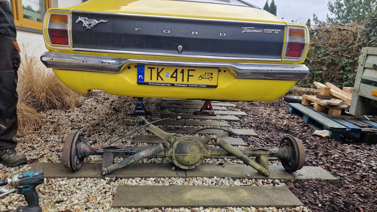 No i tu pojawia się mała zmiana planów. Oprócz silnika i skrzyni mam jeszcze zająć się... zawieszeniami. Taunus trafił zatem do mnie, żeby wyciągnąć z niego co trzeba i porozwozić po różnych piaskarniach, galwanizerniach itp.