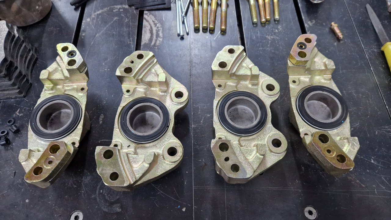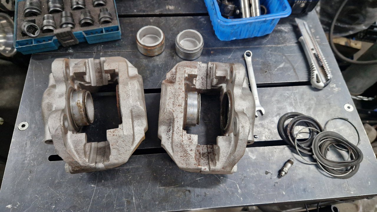 Zaciski zostały wstępnie oczyszczone bez rozkładania, żeby nie uszkodzić płaszczyzn styku połówek zacisków i wnętrz tłoczków. Teraz powyjmowałem tloczki i gumki.