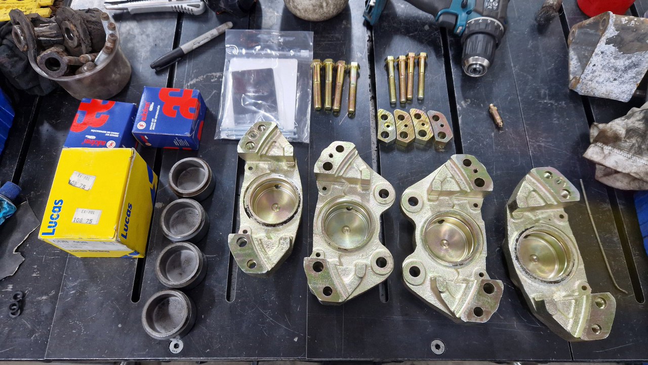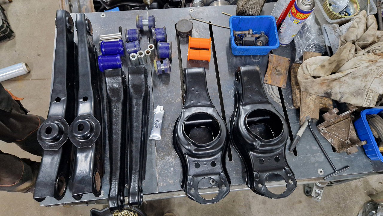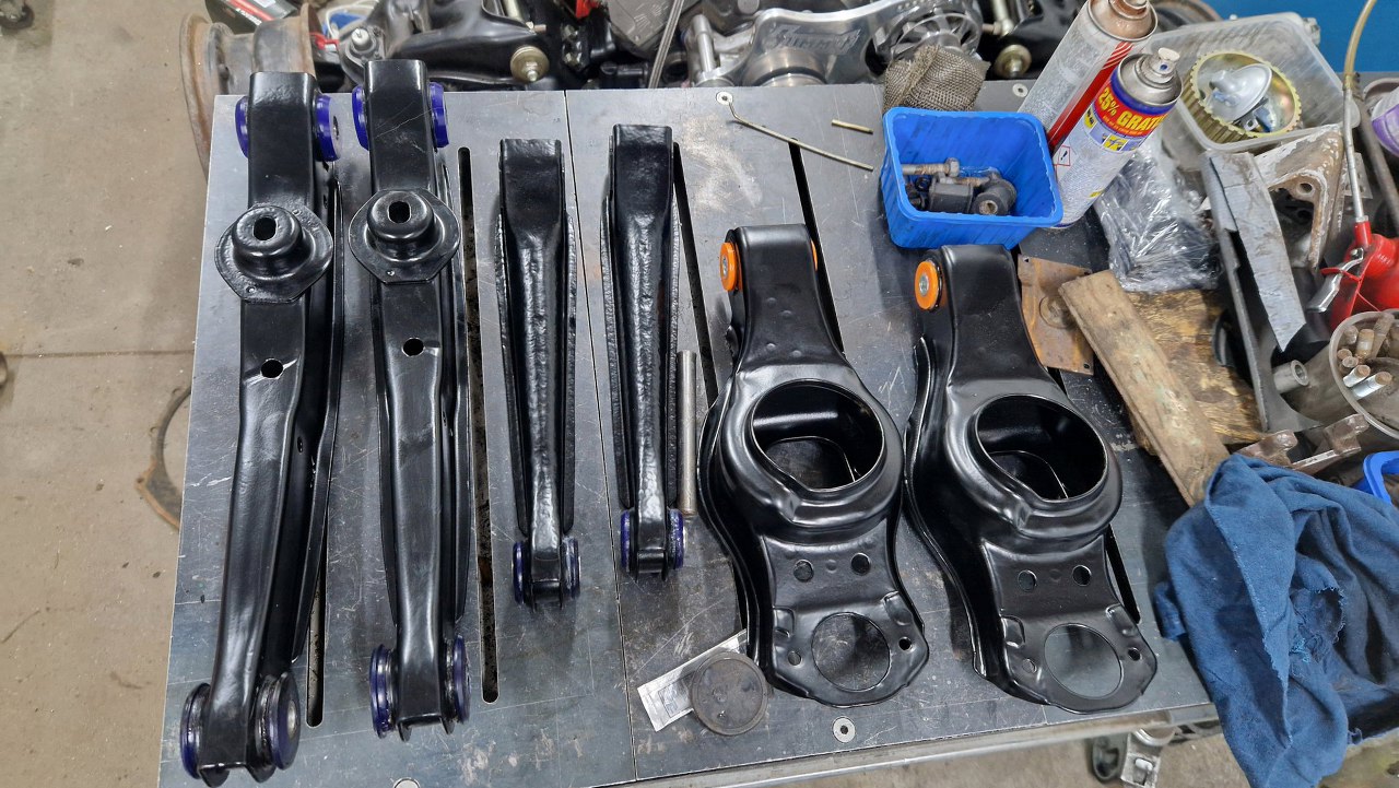 Przy okazji trochę też posprzątam i chociaż część poliuretanów nasmaruję i wcisnę do wahaczy, Wahacze oczywiście już wróciły z malowania proszkowego.