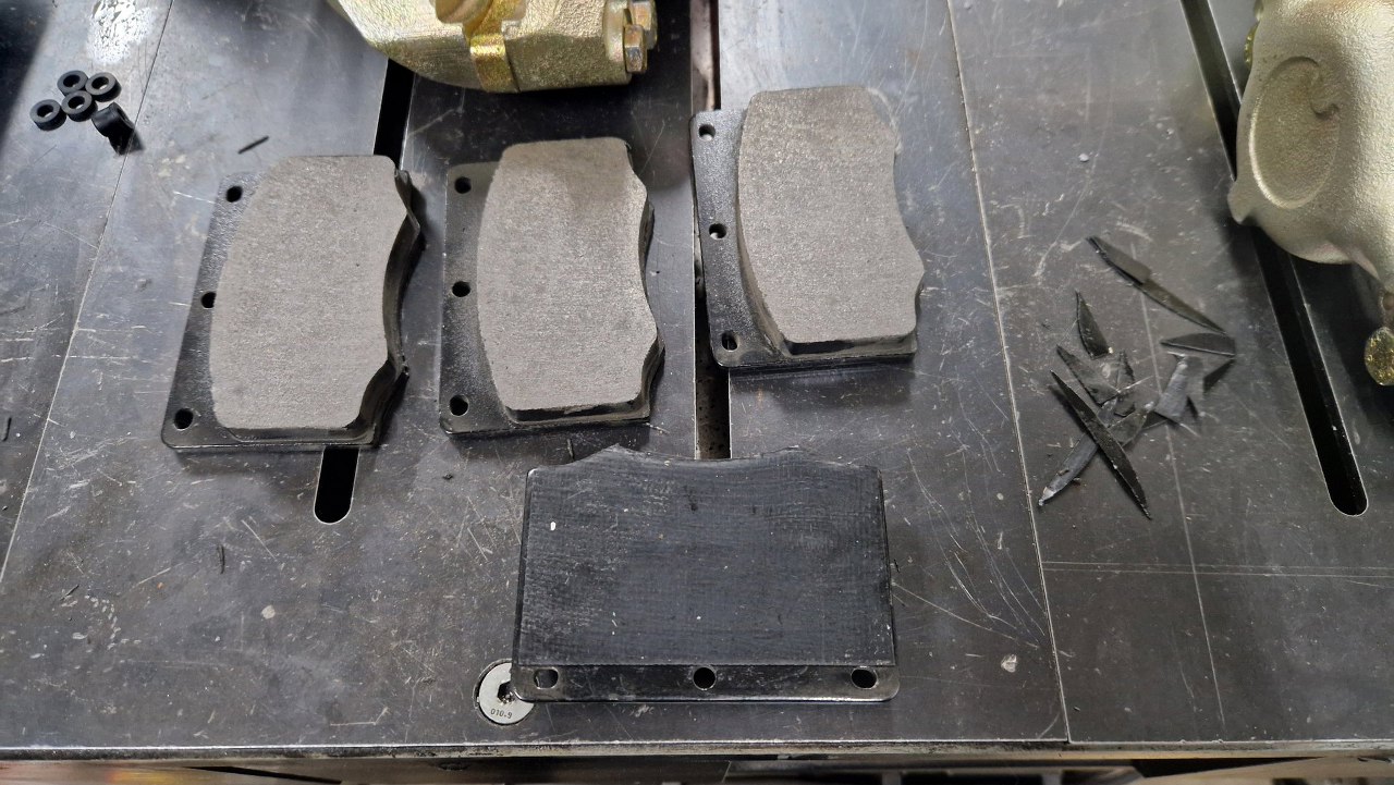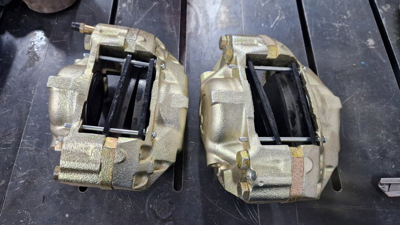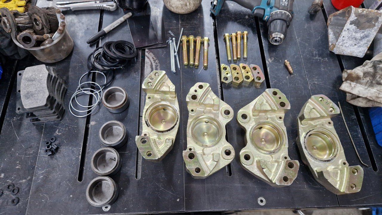 A następnie rozkręciłem zaciski na połówki. Pomiędzy połówkami sa jeszcze przekładki zwiększające prześwit w zaciskach tak, żeby zmieściły się na wentylowane tarcze.