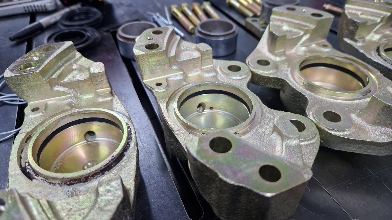 Do zacisków trafiły tłoczki, a za nimi gumki osłaniające.