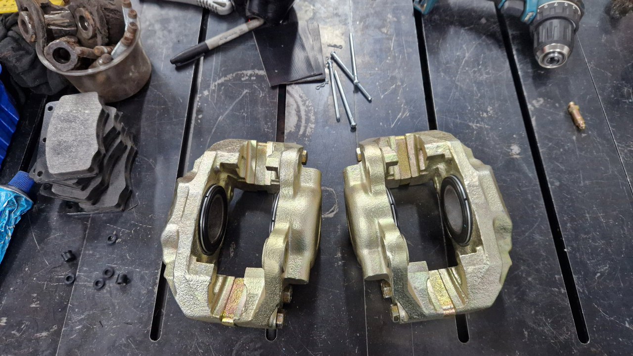 Najpierw wyczyściłem wnętrza zacisków i tłoczki i przymierzyłem, czy tłoczki swobodnie poruszają się wewnątrz zacisków.
