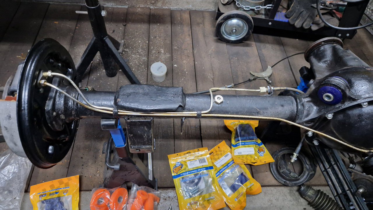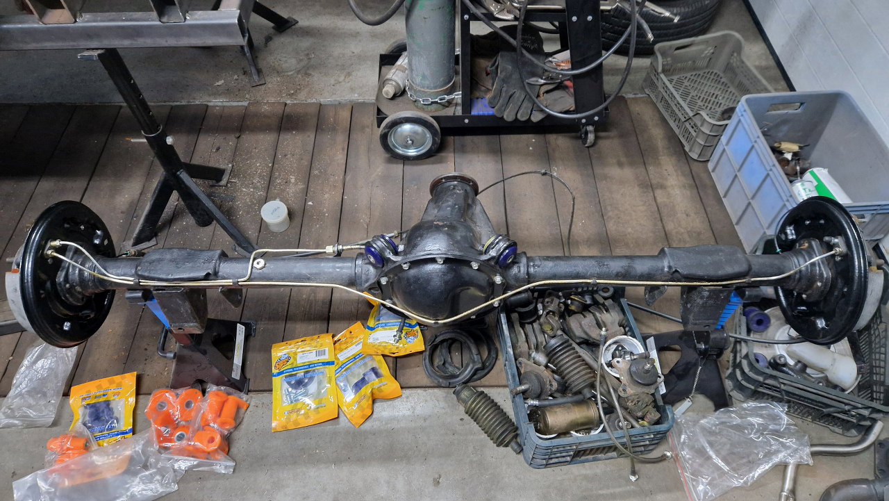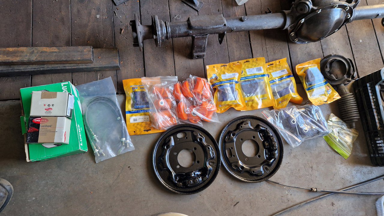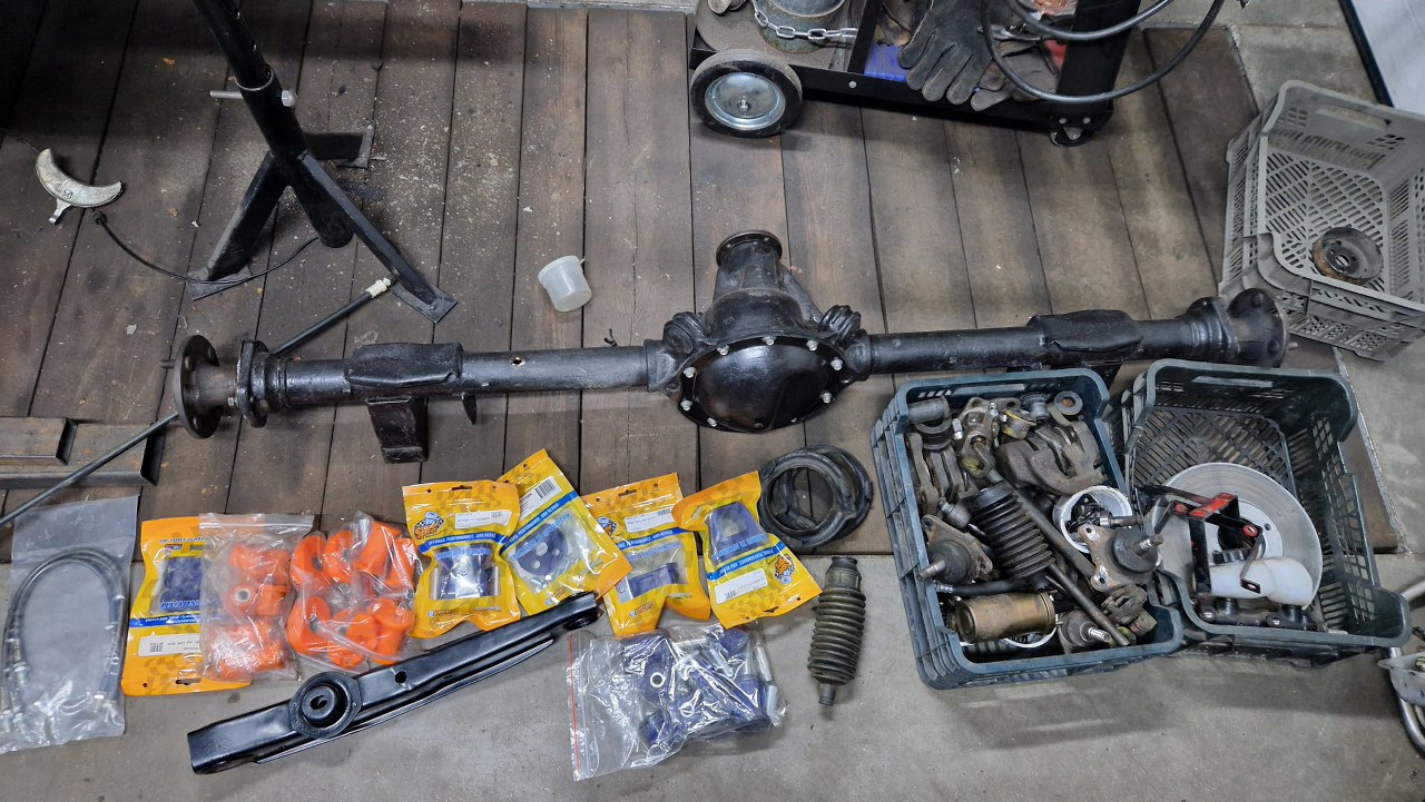 Przejdę do tylnych hamulców. Przywiozłem nowy (i to w sumie dosłownie nowy) most - obudowa jest stara, do środka zostało włożone nowe przełożenie główne i mechanizm roznicowy ze szperą. Do tego mam całe stado nowych gratów do zawieszeń.