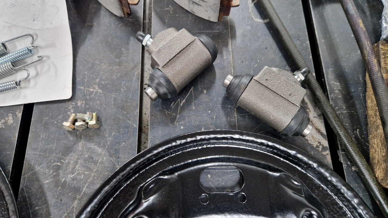 Podłączyłem do cylinderków rurki hamulcowe. To są oryginalne rurki, oczyszczone i ocynkowane. Na miejscu są też właściwe tuleje poliuretanowe.