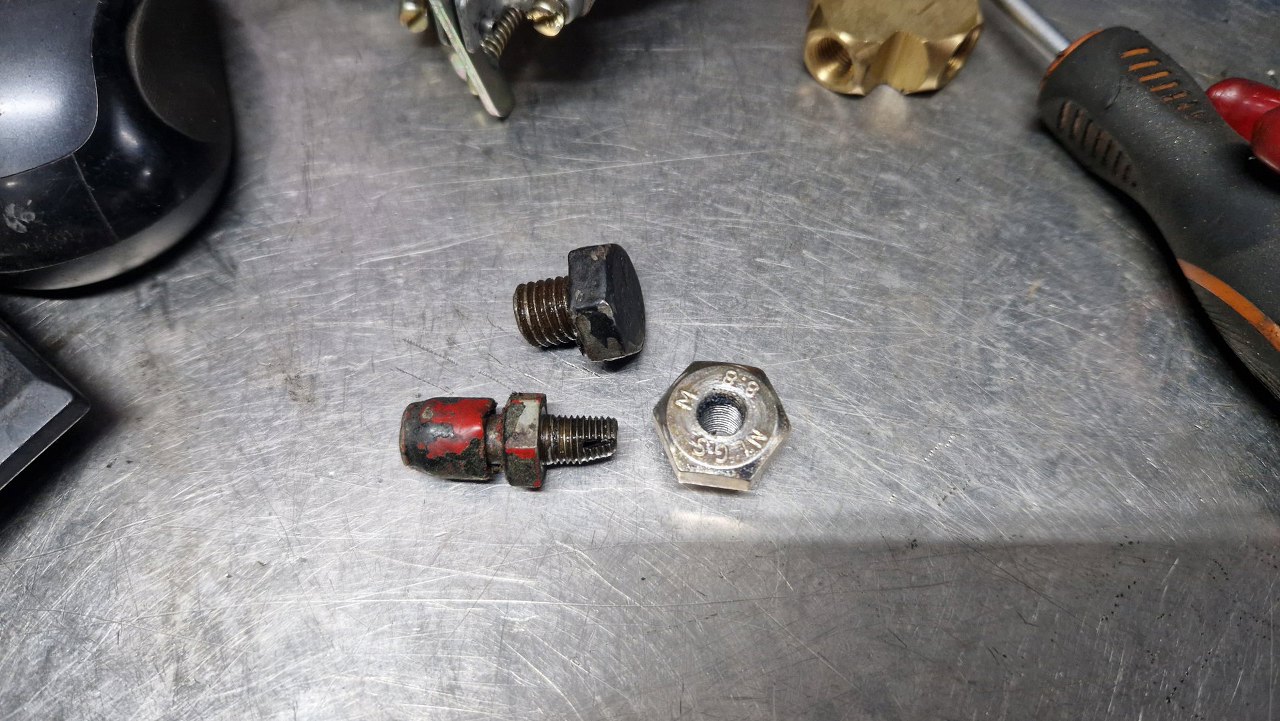 Czyli trzeba coś namotać, żeby było dobrze i ciut ładniej, niż było. Wziąłem więc nową śrubę, obciąłem na właściwą długość, a w środku wywierciłem i nagwintowałem nowe miejsce na odpowietrznik.