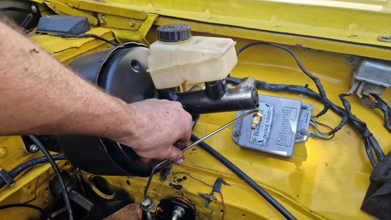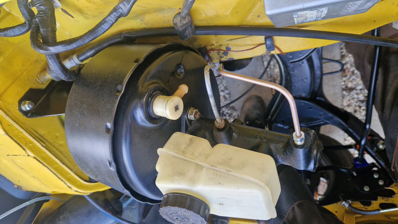 Z trójnika kolejna rurka prowadziła do pompy hamulcowej, ale serwo jest większe, a pompa inna, więc nie pasuje.